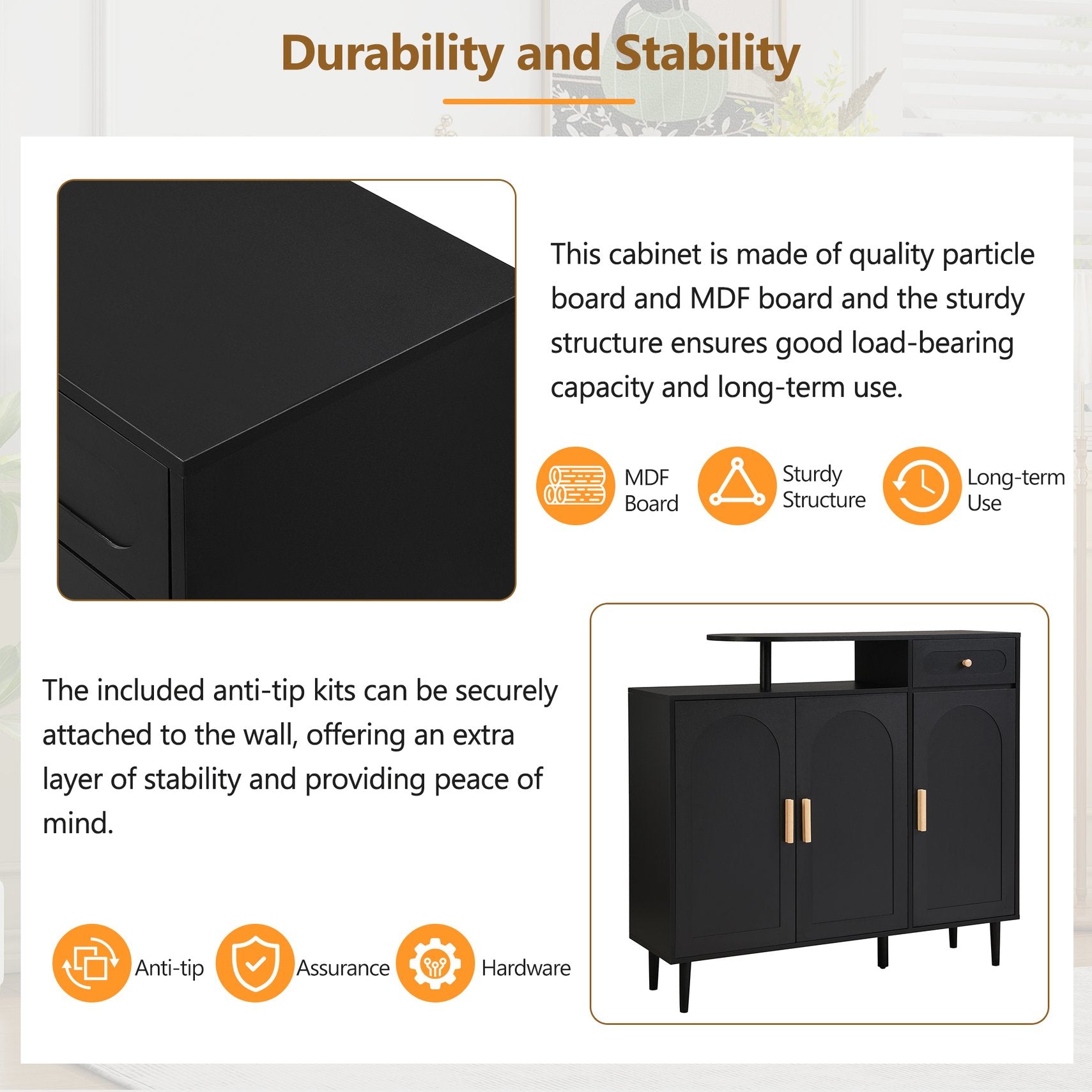 - This cabinet is made of quality particle board and MDF board and the sturdy structure ensures good load-bearing capacity and long-term use. The included anti-tip kits can be securely attached to the wall, offering an extra layer of stability and providing peace of mind.