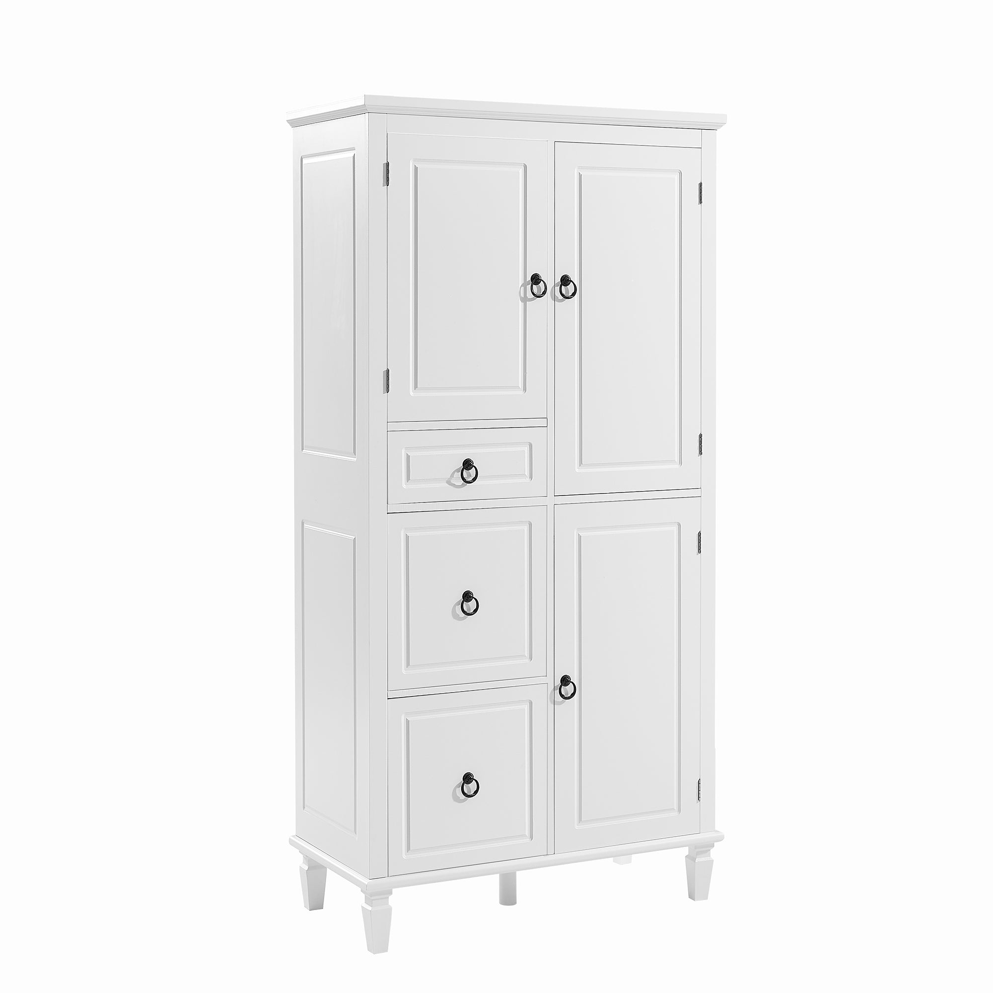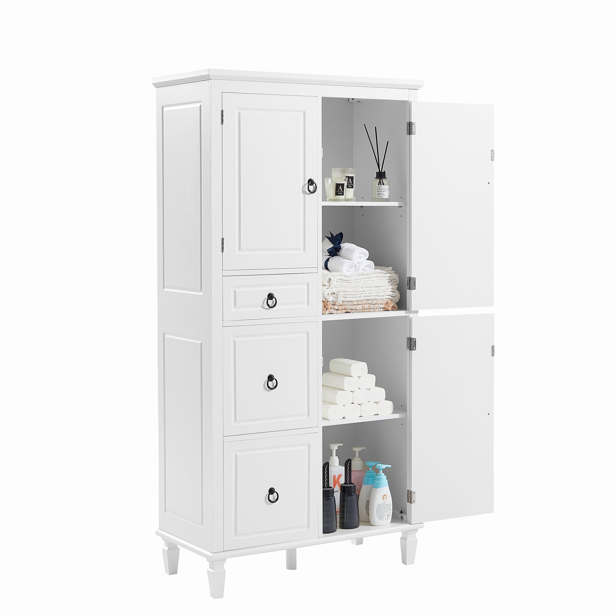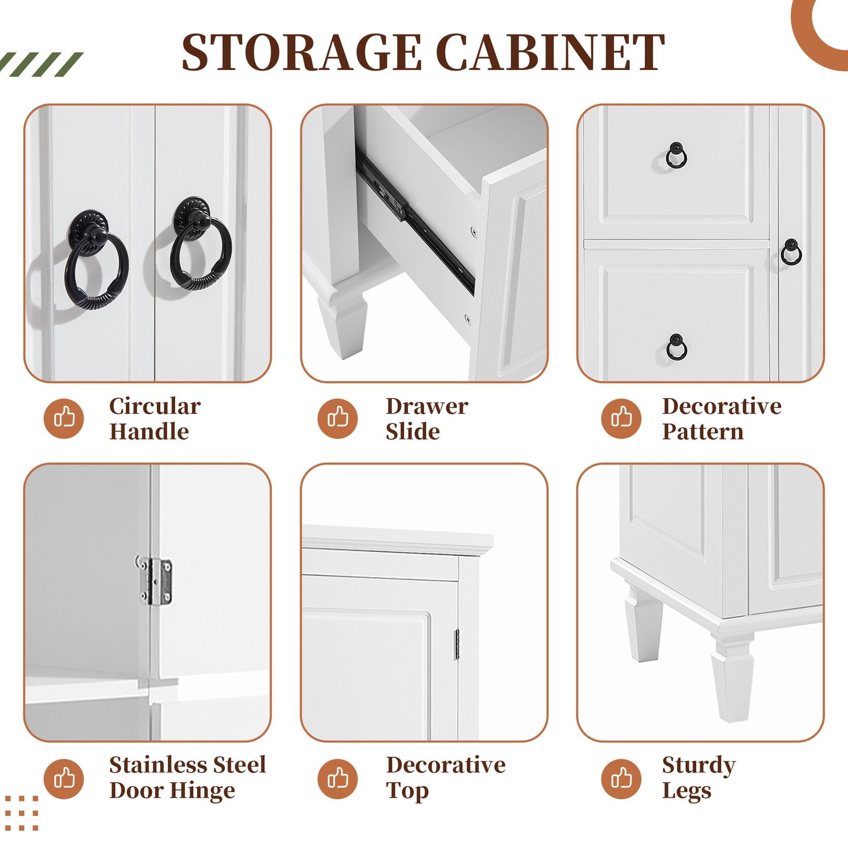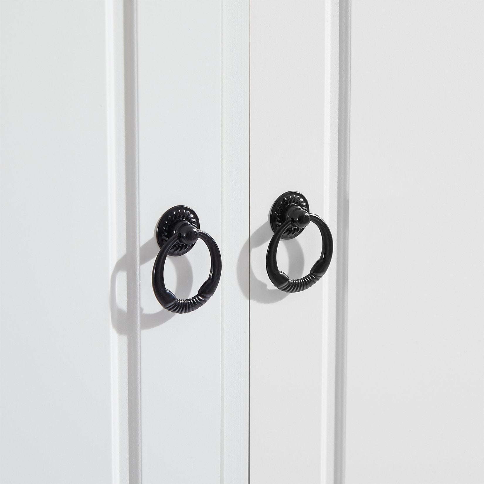Bring timeless retro charm and practical organization to any room with this versatile white storage cabinet. Clean lines and distinctive ring handles create an elegant focal point while the combination of drawers, adjustable shelves, and enclosed compartments keeps belongings neat, protected, and easy to access—ideal for living rooms, bathrooms, kitchens, or home offices.