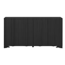 - [Enhanced Middle Corner Support]:An additional middle leg element offers improved support and stability to the overall structure, ensuring durability and a refined appearance. This innovative design detail not only reinforces the sideboard’s frame but also complements the layered linear patterns on the doors. The middle leg provides extra balance, making the sideboard both a functional storage solution and a robust piece of art.