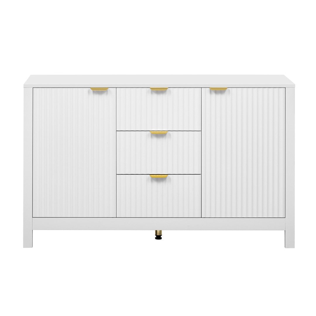 - [Functionalist Aesthetics]: This sideboard features three spacious drawers and a double-door storage cabinet, offering organized storage for small items, instantly concealing household clutter. Redefining spatial harmony with seamless organization—where mess disappears and space breathes anew.