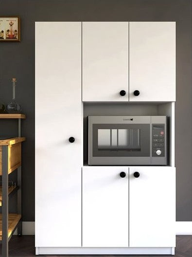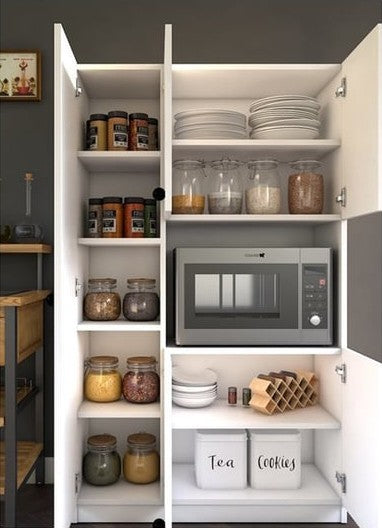 - Microwave/Appliance Stand: Dedicated shelf area sized to hold a microwave or other countertop appliance, keeping surfaces clear and organized.