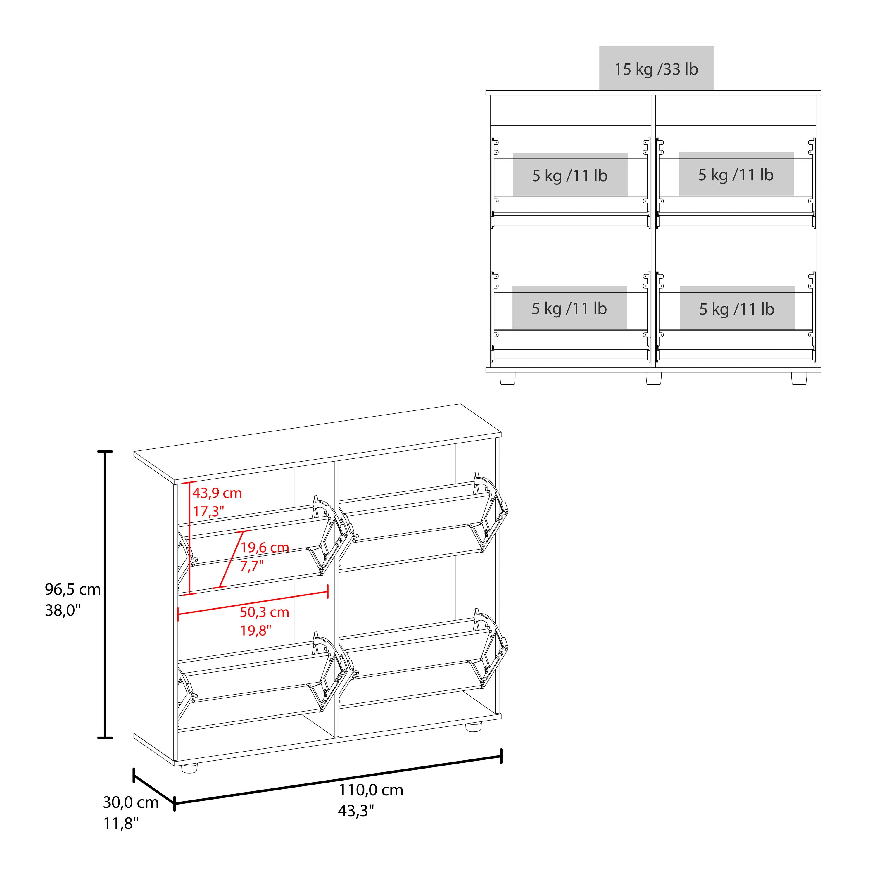 - Design: Four tilt-out doors conceal multiple compartments for shoes or other items, keeping clutter out of sight
