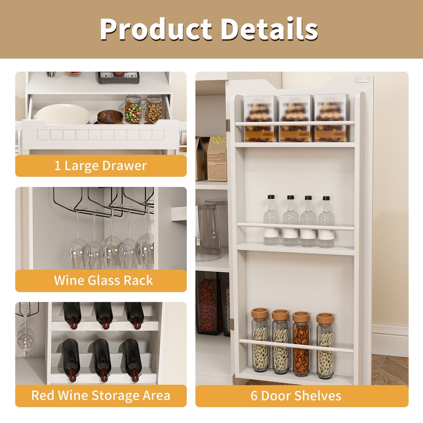 - Ultimate Multi-Purpose Furniture Piece:Designed for maximum versatility, this cabinet effortlessly transforms to suit your needs. Use it as a kitchen storage unit, an elegant buffet server for dinner parties, a charming coffee bar station, or a sophisticated liquor display cabinet. Its adaptable design makes it equally functional in dining rooms, living areas, or entertainment spaces.
