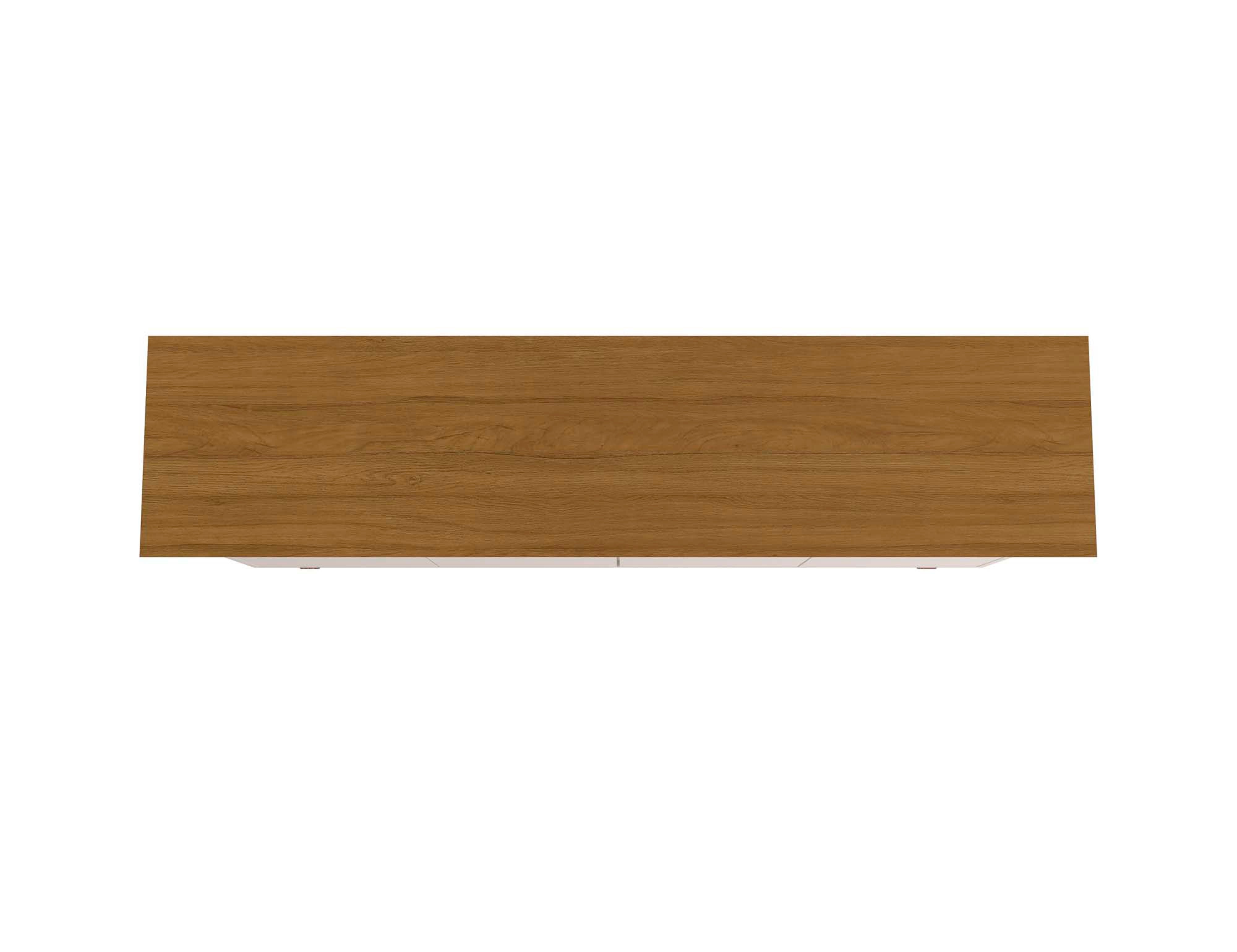 - Design & Materials: Particleboard construction with an off-white and natural finish, featuring a sleek beveled top and framed base for a refined aesthetic.