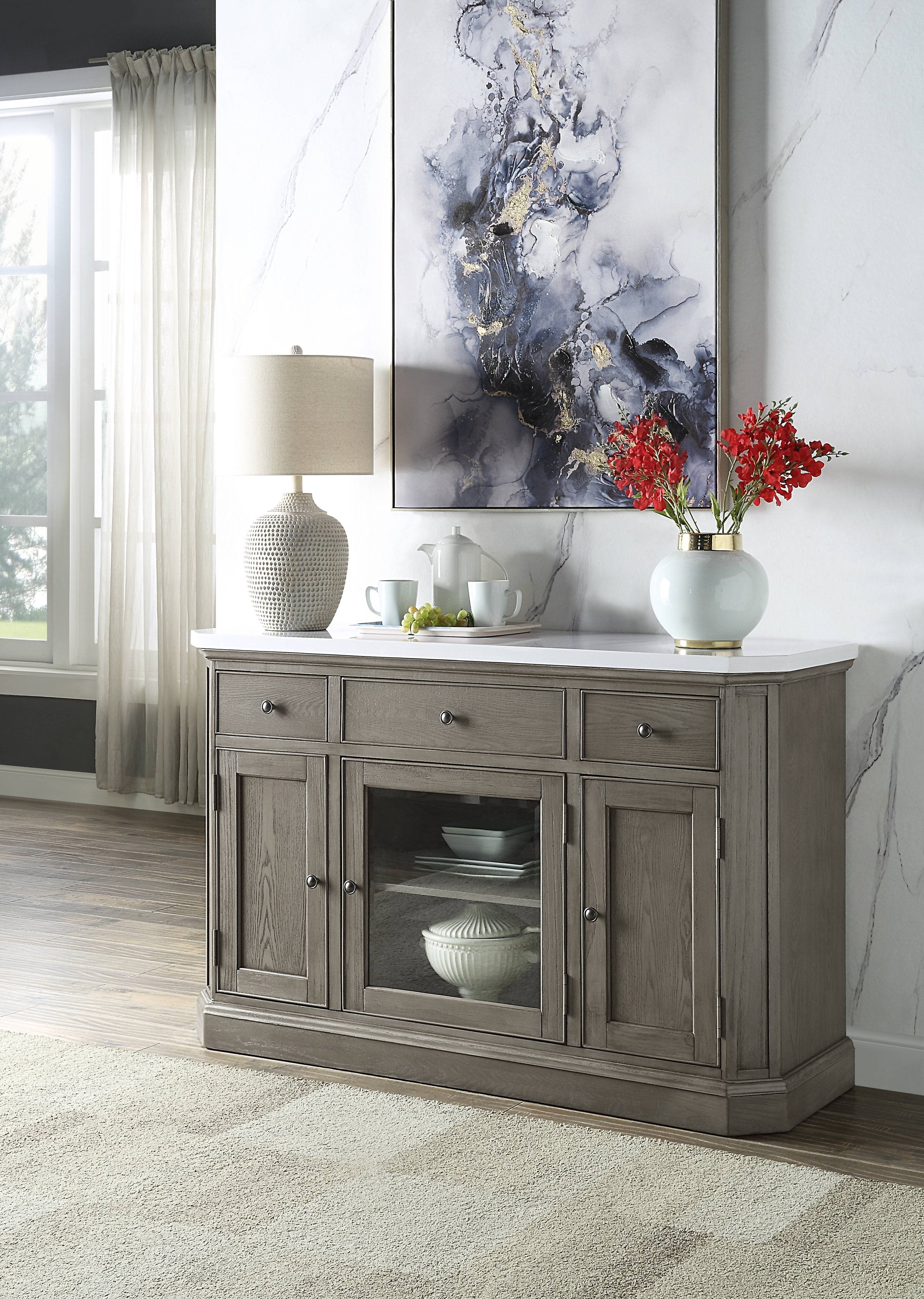 Elevate your dining or living space with the Zumala server, which pairs a luxurious artificial marble top with a warm weathered oak finish. Thoughtfully designed for both style and function, this server offers ample storage, refined details like nailhead trim and turned supports, and durable construction to complement traditional and transitional decors.