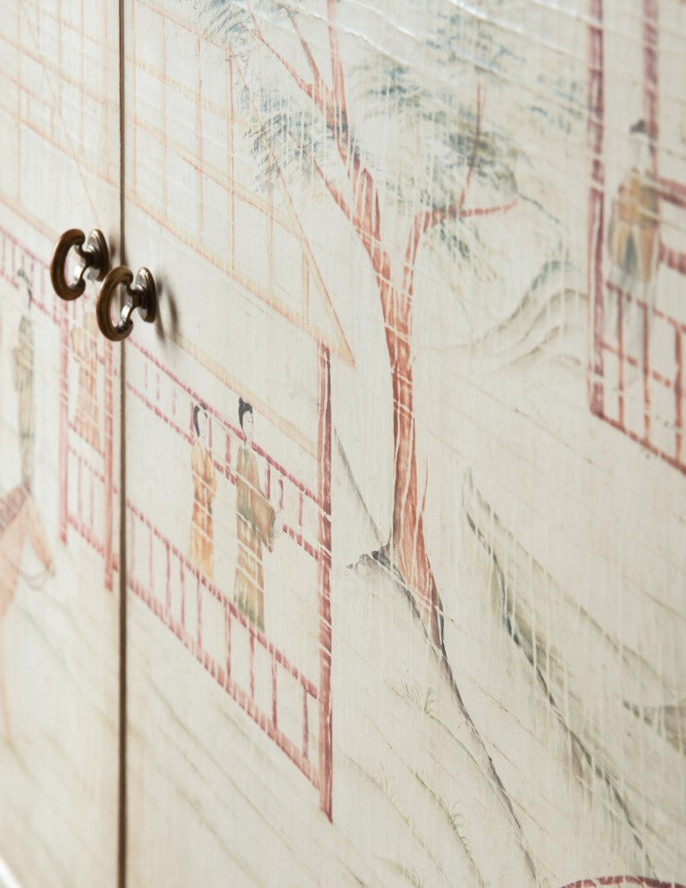 - Decorative detail: Hand-painted Asian motif in red, brown, and green for an authentic, aged look