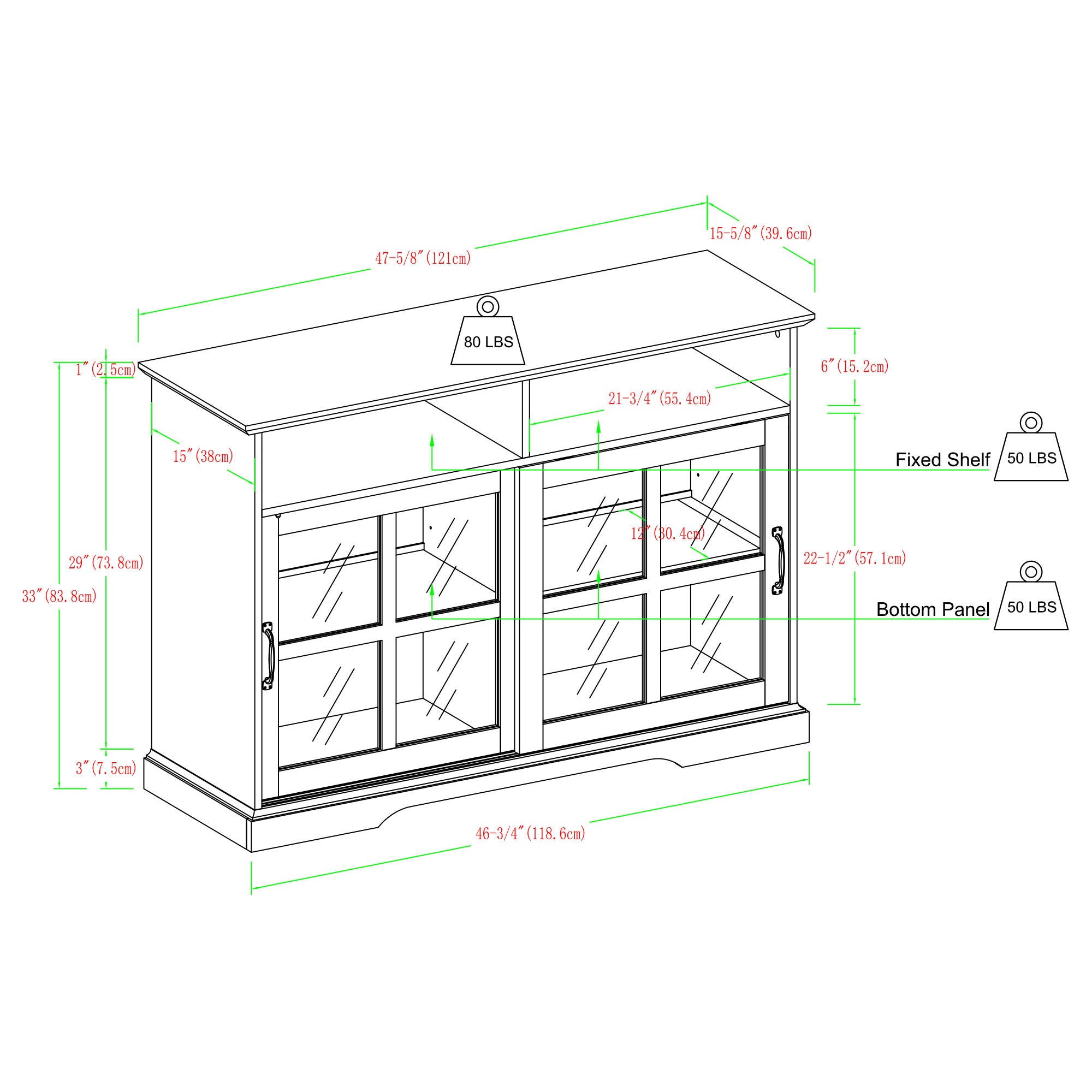- Additional Features: Special Features: 2 wood and glass sliding doors, 2 adjustable shelves, open/closed storage, wall anchor