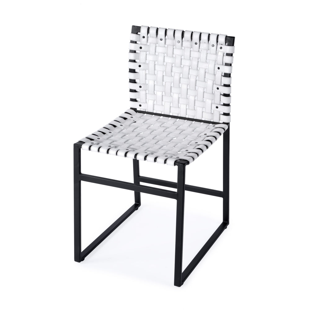 Inland Leather Side Chair – Stylish Mid-Century Modern Design with Sturdy Iron Frame for Any Space