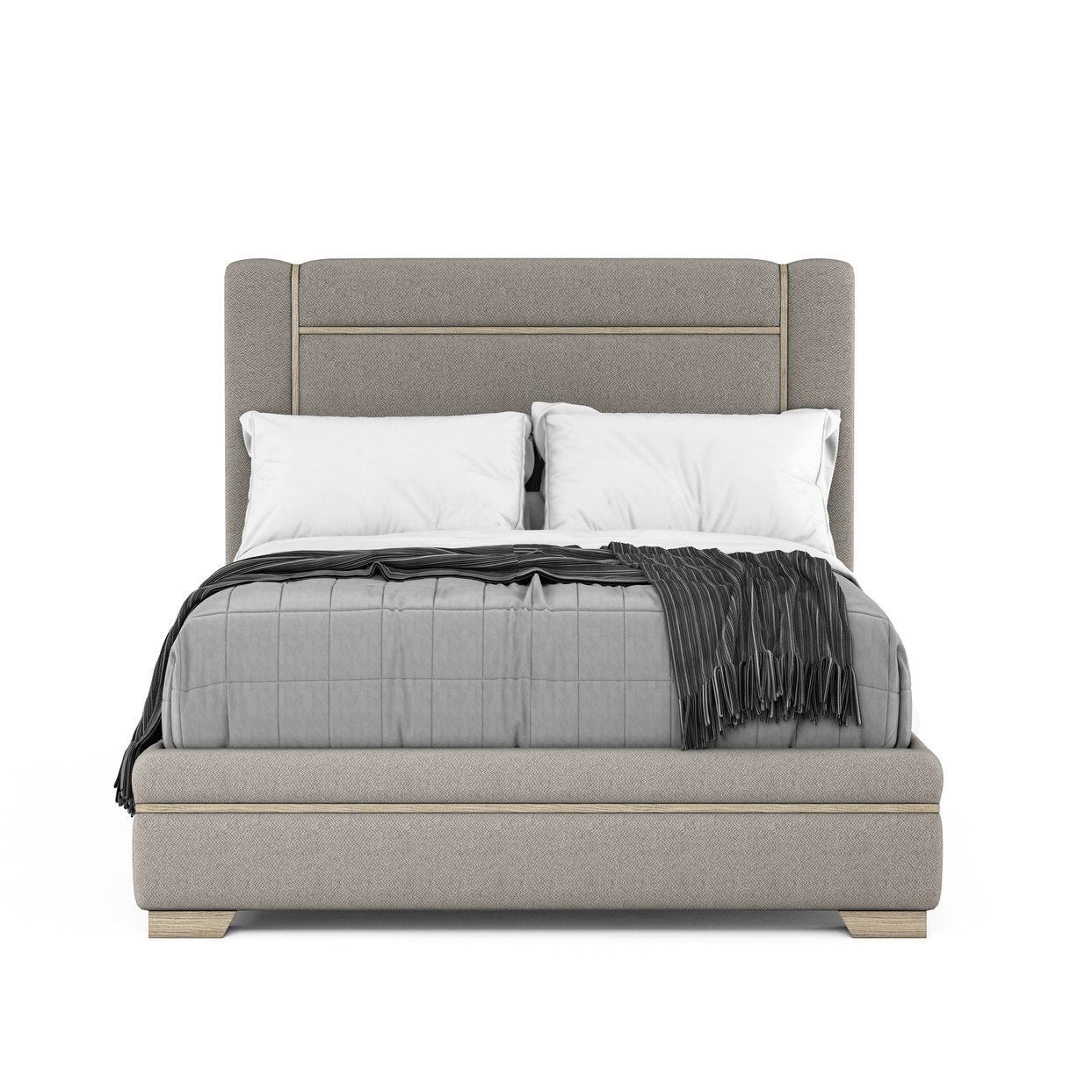 - Wood slat detailing through headboard, footboard and side rails