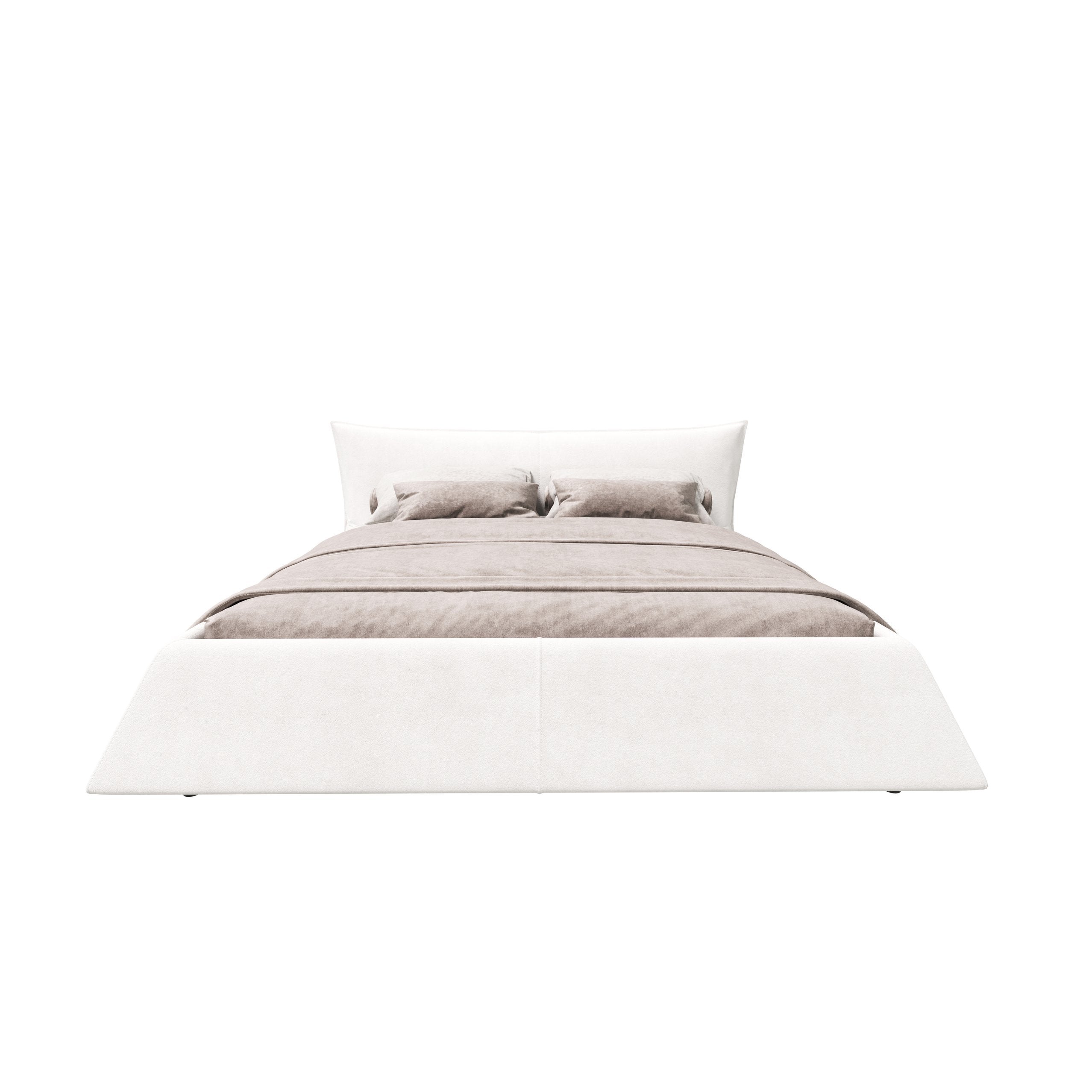Transform your bedroom into a restful retreat with this king-size upholstered platform bed. Combining a sculpted velvet headboard, solid wood craftsmanship, and a reinforced metal slat system, it delivers both luxurious comfort and long-lasting support. The fully upholstered, embedded design keeps the mattress securely in place for a quiet, stable sleep experience while the neutral beige/white velvet complements a wide range of decor styles.