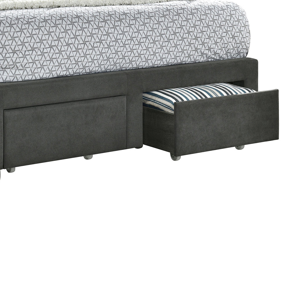 - Built-in design includes four spacious storage drawers integrated into the frame for easy access to linens, clothing, or accessories