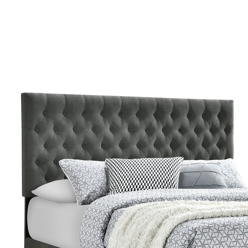 - Headboard: Button-tufted upholstered headboard offers a timeless, elegant look and comfortable back support for reading or lounging