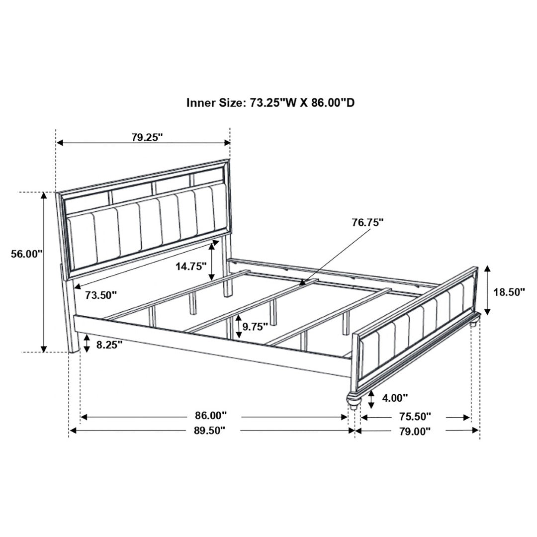 - Dimensions: 56" H x 79.25" W x 89.5" L (California King) — overall measurements for planning your space and mattress placement.