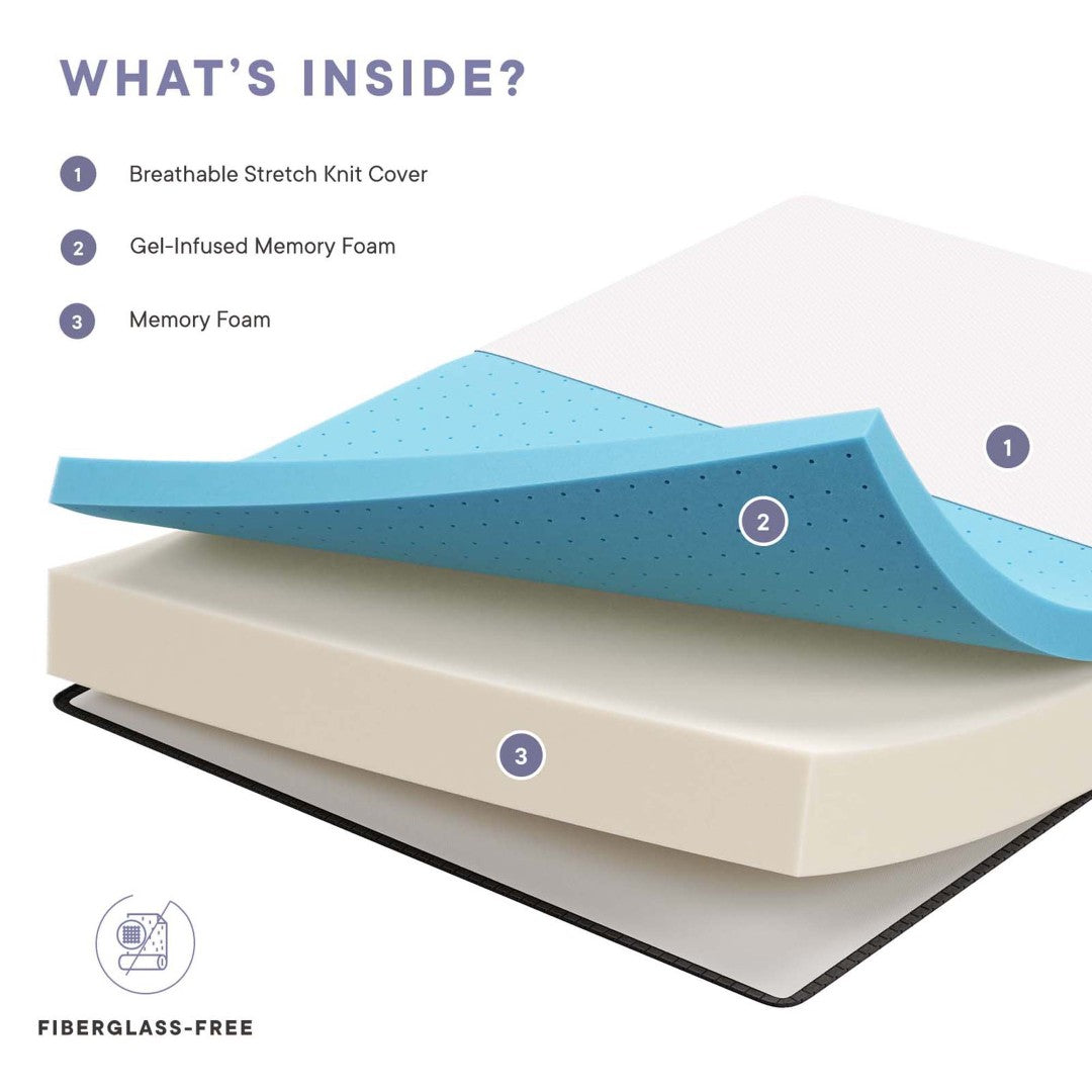 - Comfort layers: Gel-infused open-cell memory foam that quickly conforms to weight and position for pressure relief and reduced aches.