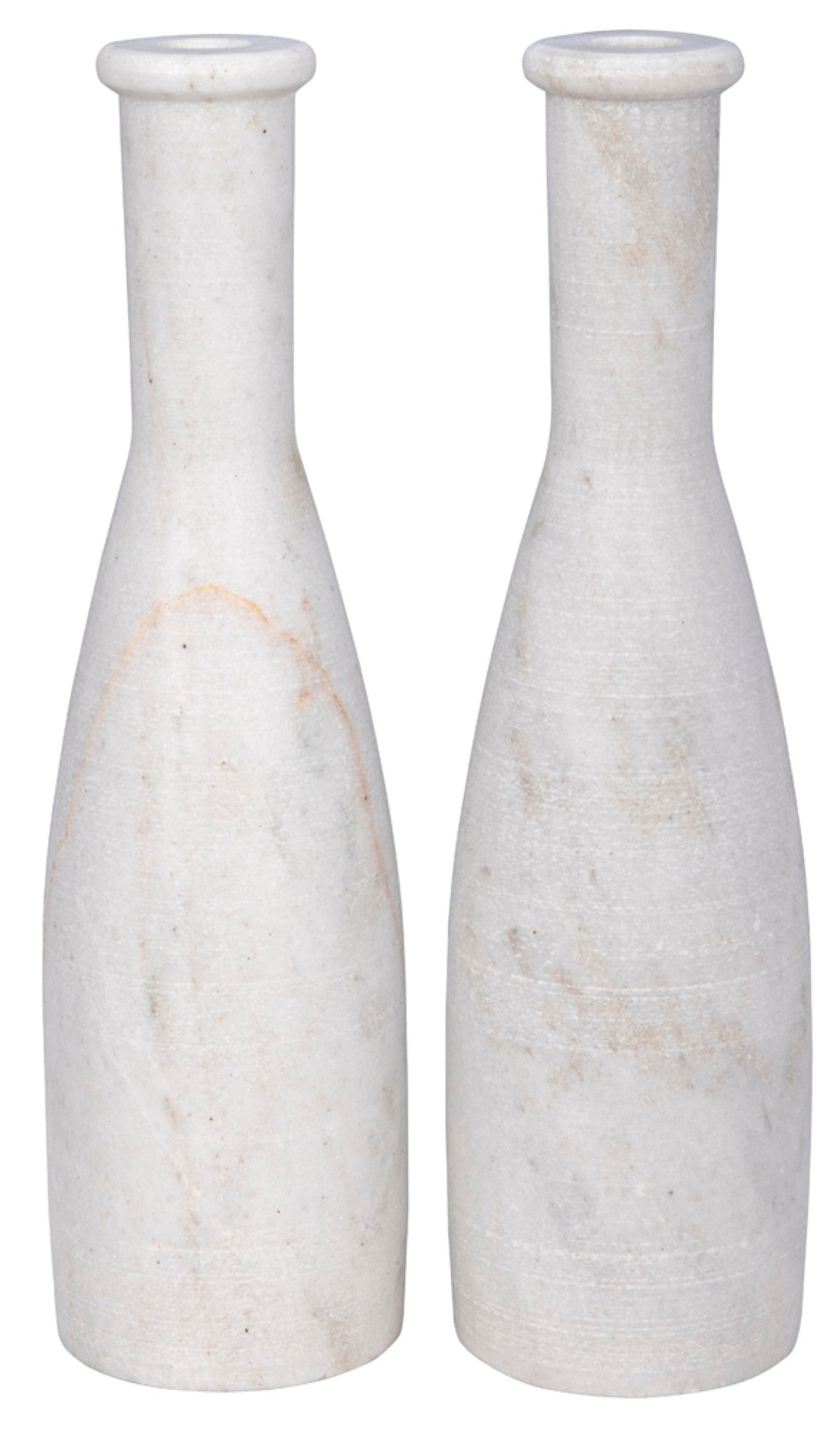 Elevate your tabletop or mantel with a pair of handcrafted marble candle holders that blend timeless elegance with artisanal character. Each piece is hand-carved from solid Bianco Crown marble and finished with a subtle wax polish, creating a refined, tactile accessory that complements both modern and classic interiors. These candle holders are sized for standard taper candles and sold as a coordinated set of two—each with unique natural veining, so no two are exactly alike.