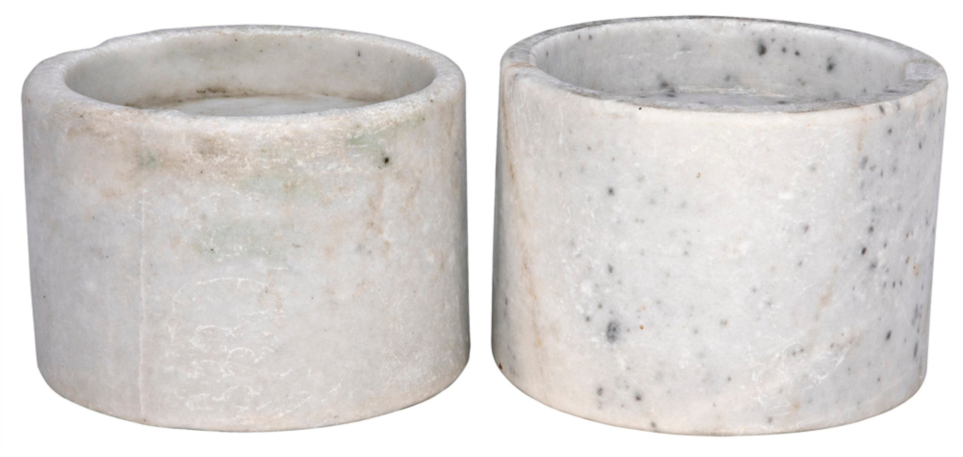 Elevate any tabletop or mantel with these handcrafted marble candle holders — a refined blend of natural beauty and minimalist design. Each piece is carved from Night Snow marble and finished with a soft wax to highlight the stone’s unique veining, making the pair a tasteful accent for modern, rustic, or classic interiors. Sold as a coordinated set of two, they’re sized for standard pillar candles and make a thoughtful gift or enduring addition to your decor.