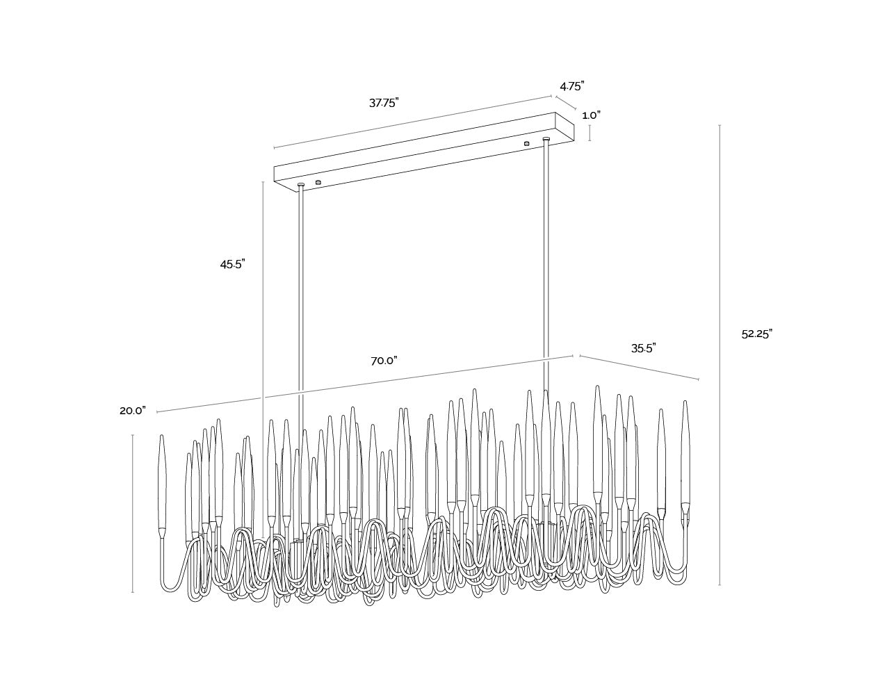 - Dimensions: Hestia Chandelier - Large 111811 = 70W x 35.5D x 52.25H | lbs