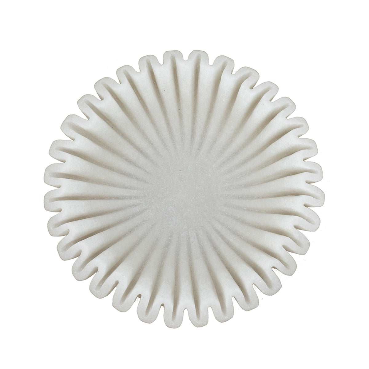 This sculptural bowl blends organic texture with modern form to create a versatile statement piece for tabletop, entryway, or shelf styling. Its wavy rim and textured white finish bring tactile interest while remaining neutral enough to complement colorful or minimalist interiors. Use it as a standalone sculptural object, a catchall for keys and small items, or a base for decorative arrangements.