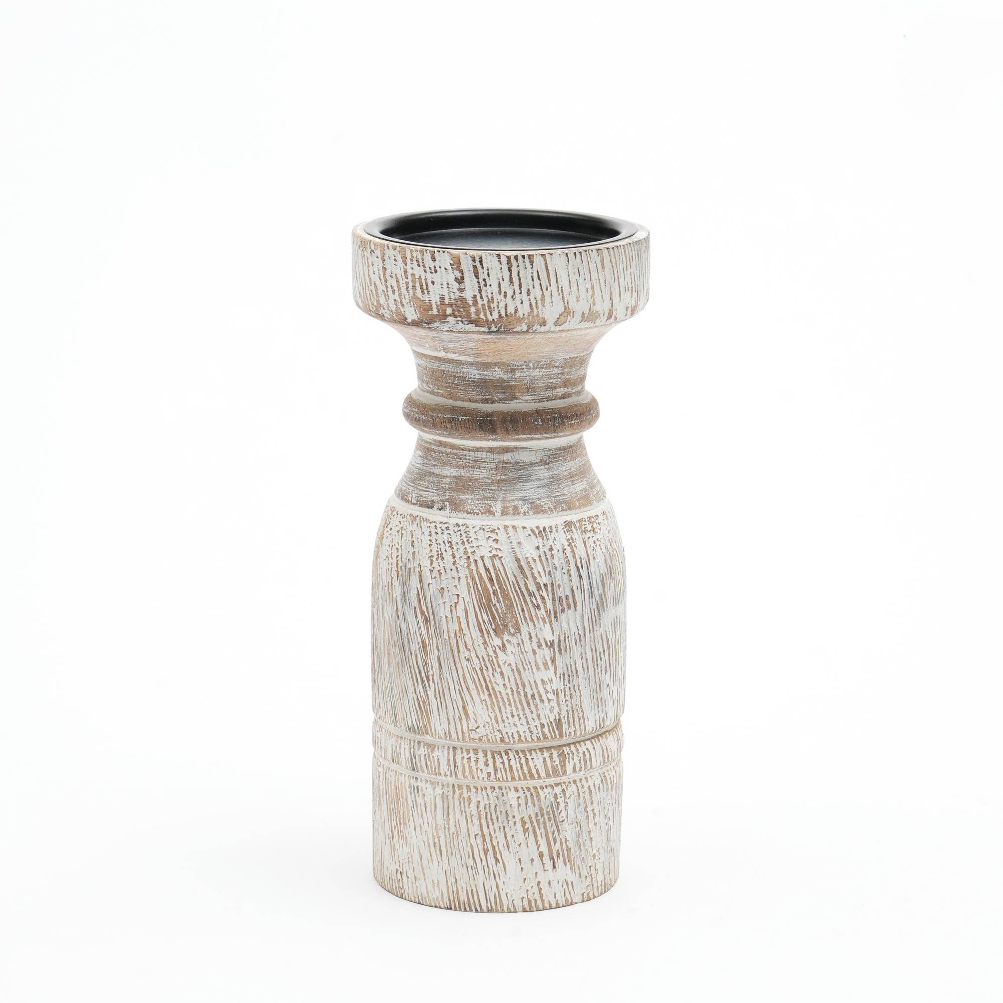 Elevate your tabletop and mantel displays with this elegant wooden centerpiece candle holder. Crafted to combine classic charm with everyday functionality, it brings warmth and refined style to living rooms, dining tables, entryways, or special events. The tasteful white finish and carved details make it a standout piece that complements both traditional and modern interiors while securely showcasing large candles for a bold focal point.