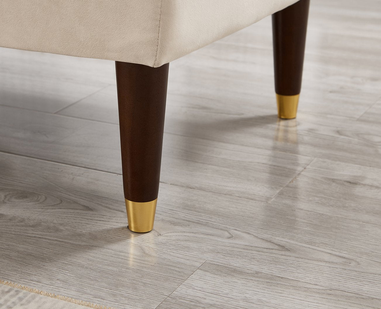- SOLID WOOD LEGS: The four legs of the lounge sofa are made of rubber wood material, with a gold metal cover at the end side, providing a unique embellishment to the whole lounge sofa. The solid wood leg have anti slip pads at the bottom to prevent the sofa from sliding and protect the floor from scratches.