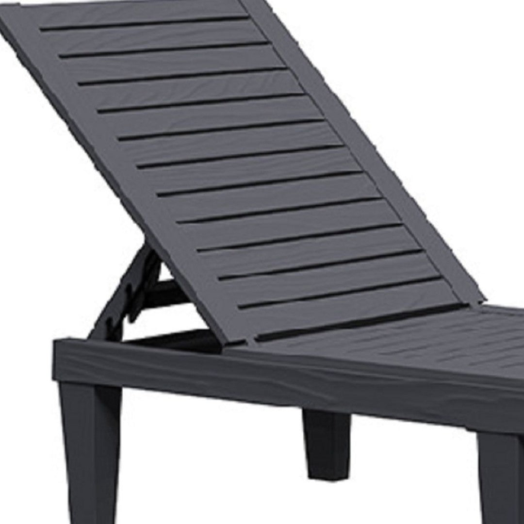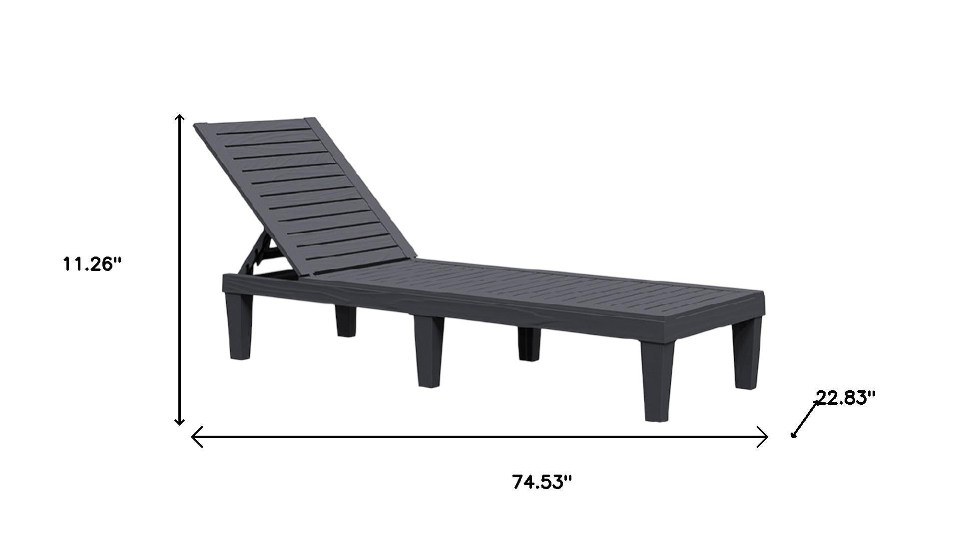 Bring resort-style comfort to your patio, poolside, or garden with this sturdy, low-profile chaise lounge built for long-lasting outdoor enjoyment. Its faux wood grain finish and streamlined armless silhouette create a modern, relaxed look, while the five-position adjustable backrest lets you recline, read, or sunbathe with ease. Constructed from weather-resistant polypropylene resin with UV protection, this chaise balances durable performance and comfortable design for everyday outdoor living.