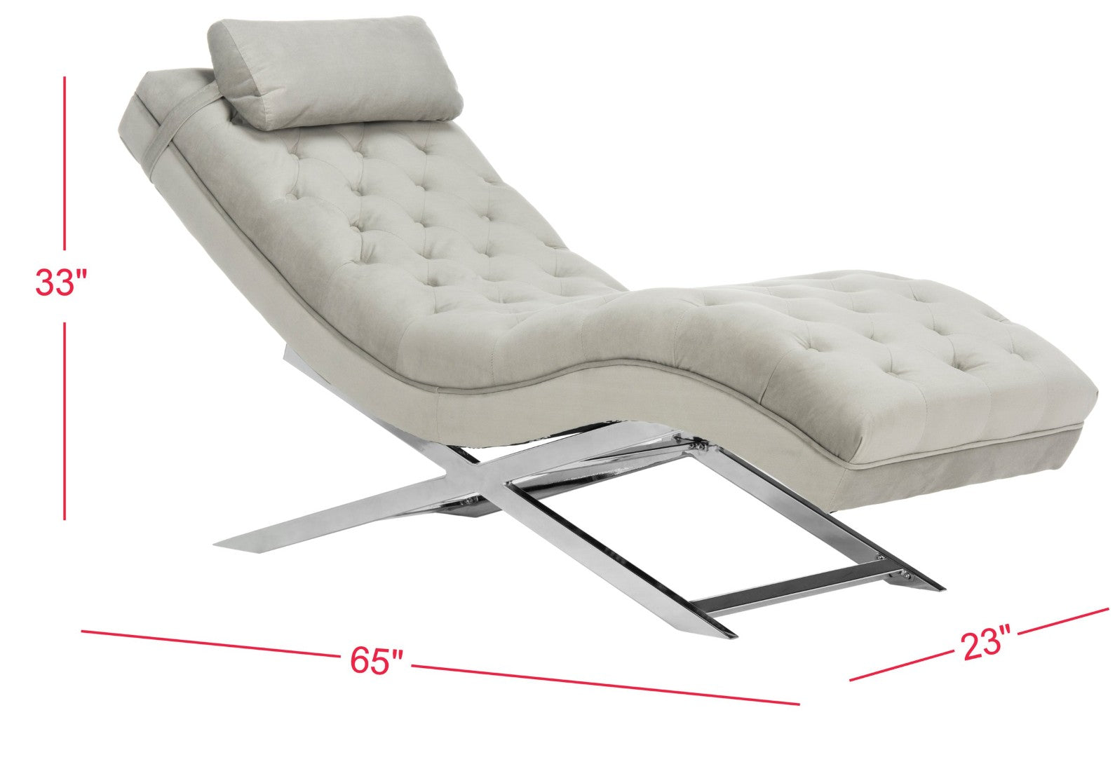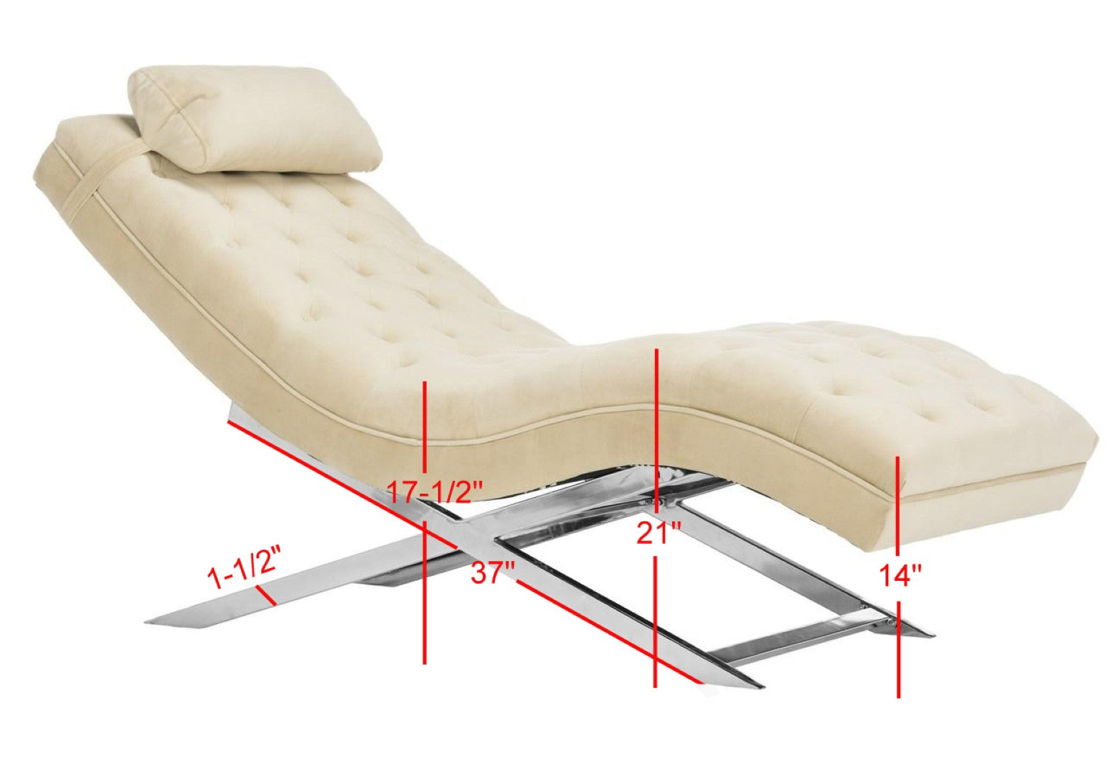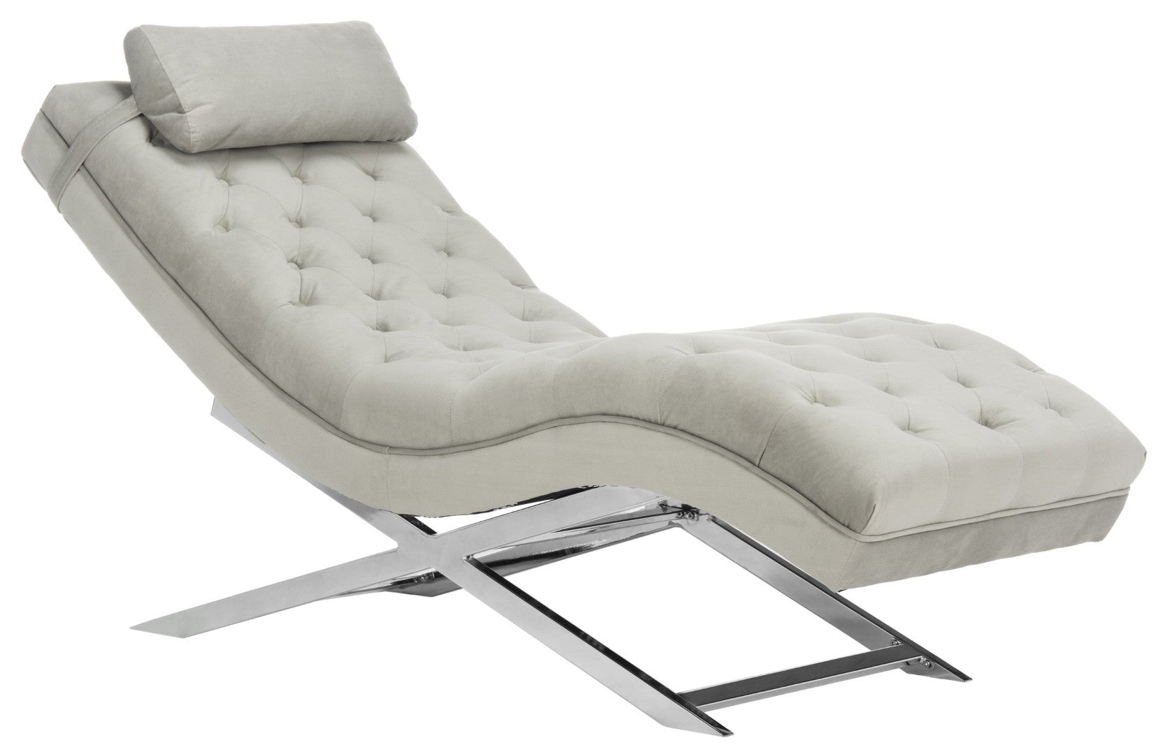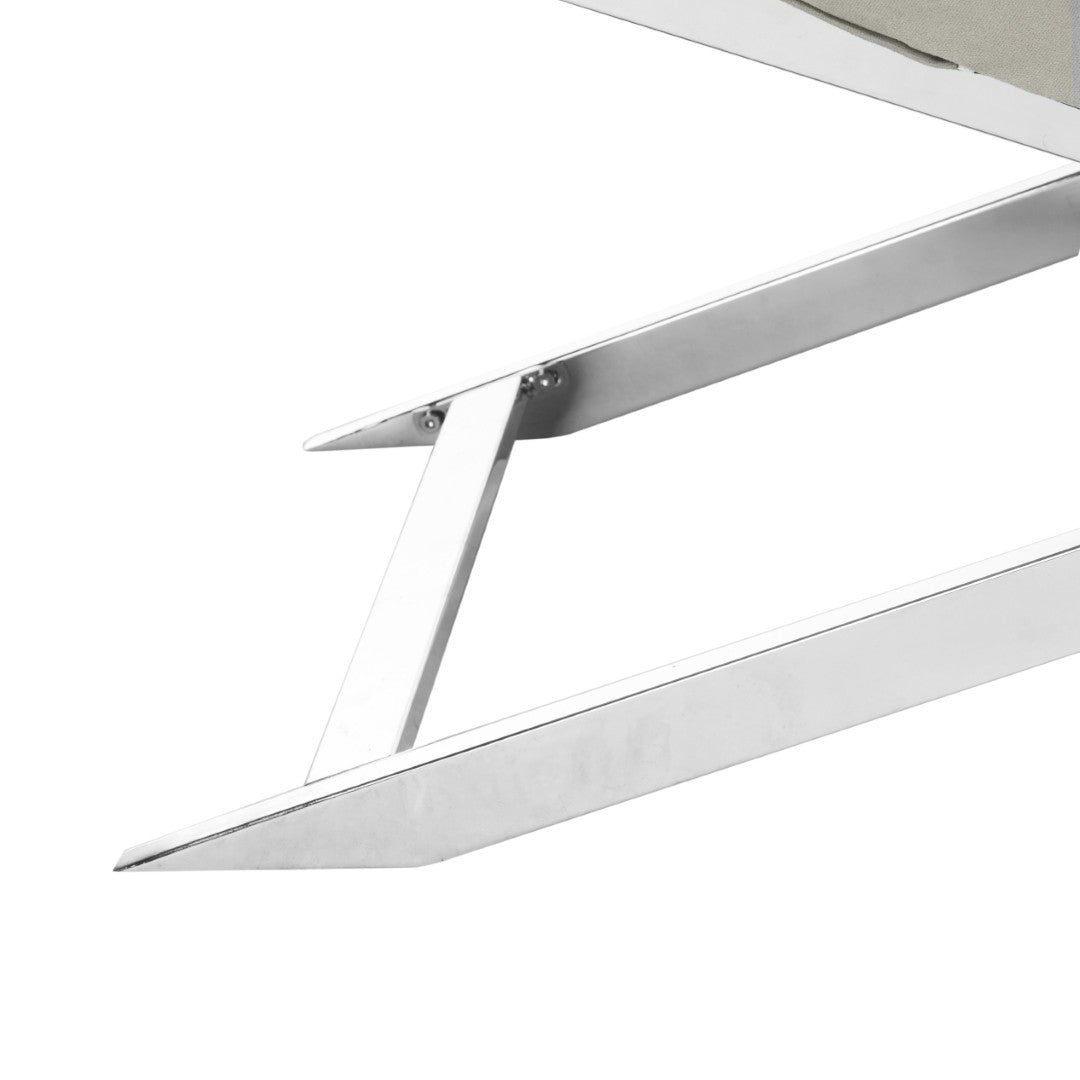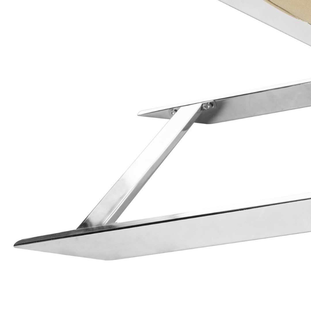 Sink Into The Serene Comfort Of This Spa-Inspired Chaise, Where European Resort Elegance Meets Contemporary Design. Upholstered In Soft Beige Velvet And Set On A Sleek Chrome-Plated Frame, This Chaise Adds A Refined Focal Point To Living Rooms, Bedrooms, Or Lounge Areas While Providing Luxuriously Supportive Seating And A Removable Headrest Pillow For Added Relaxation.