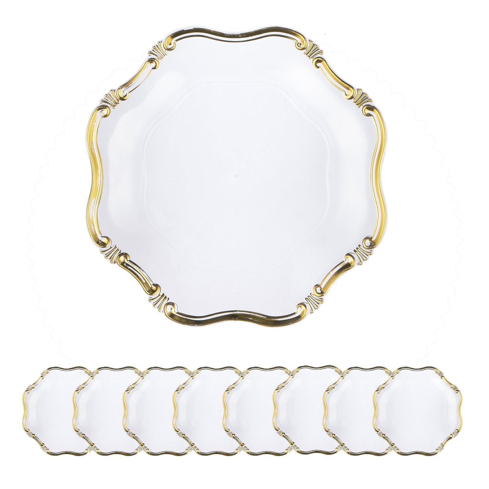 - Package: 8 plastic charger plates — ideal for small dinner parties, family meals, or event place settings.