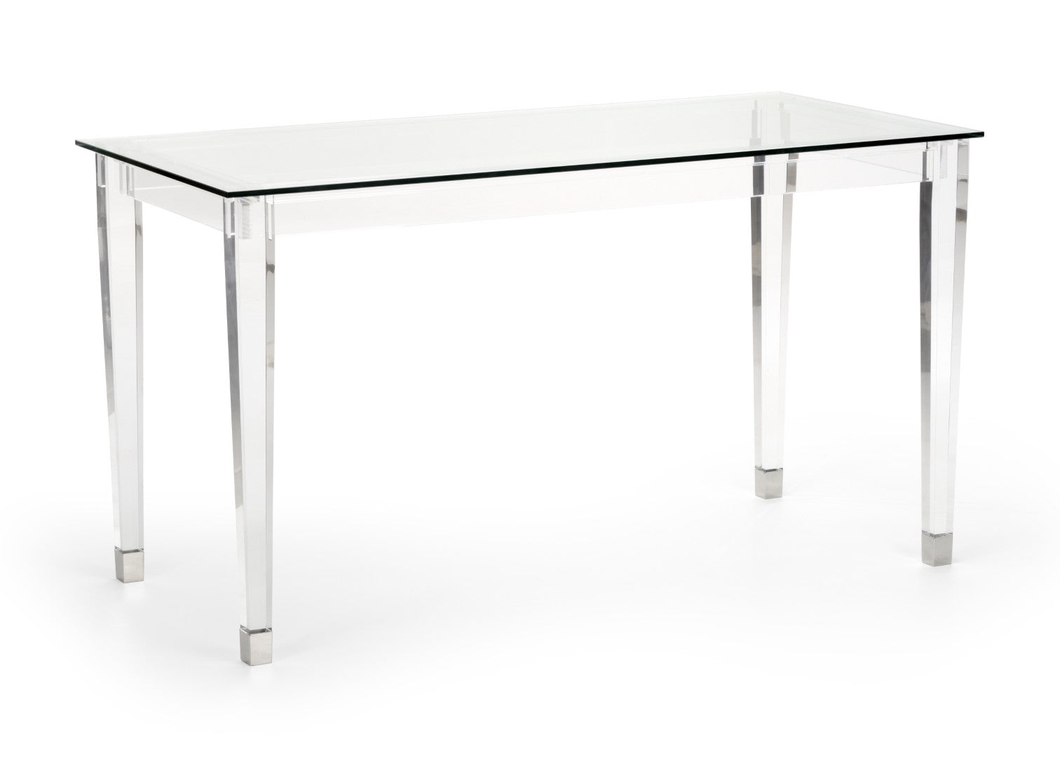 Elevate your workspace with the Acrylic Denver Desk in Silver — a sleek, modern statement piece that blends crystal-clear acrylic, polished nickel accents, and a durable tempered glass top for a light, airy aesthetic that still feels substantial and professional. Its minimalist silhouette and refined materials make it ideal for contemporary homes, studios, or executive offices that want a clean look without sacrificing durability.