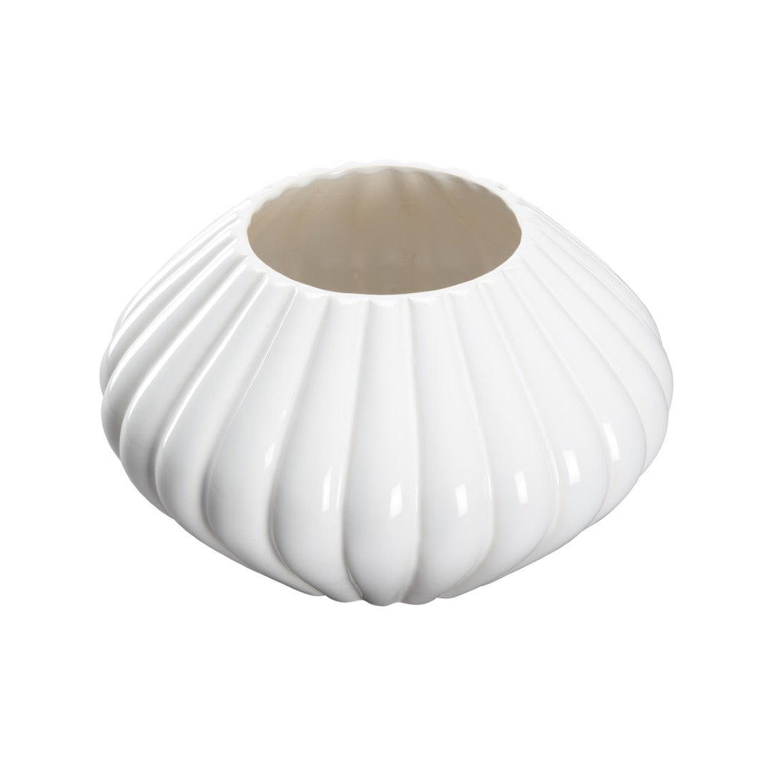 Bring timeless elegance to your plant displays with the Amelia Cachepot. Crafted with a glossy white ceramic glaze and a delicately scalloped rim, this compact planter adds refined texture and soft architectural detail to tabletops, shelves, or windowsills. Designed by Elizabeth Wicker, its versatile aesthetic complements both modern and traditional interiors.