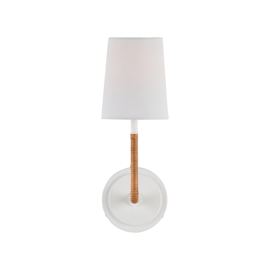 Clean, modern, and warmly textured, this wall sconce pairs a smooth white metal frame with hand‑woven natural rattan to create a balanced look that suits coastal, bohemian, and contemporary interiors. The Amelia Sconce casts a soft, flattering light while serving as a decorative focal point—its contrasting materials add visual interest without overwhelming a space.
