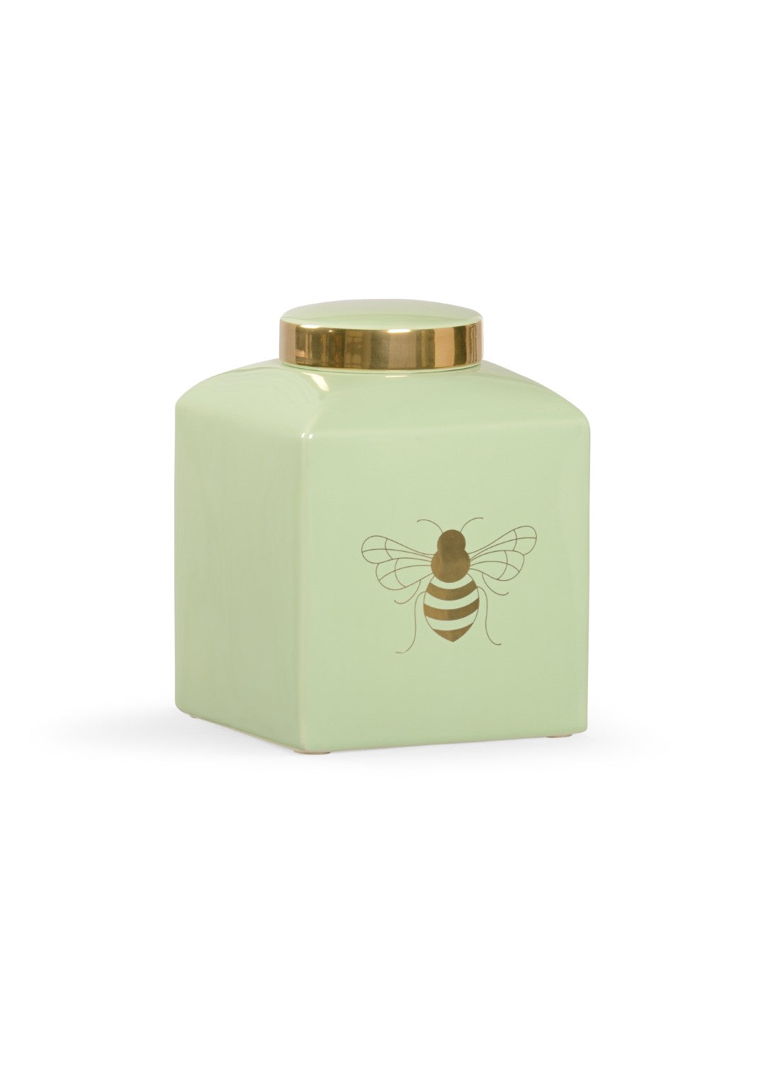 Bring classic charm to your decor with this petite ginger jar, updated with a contemporary pistachio glaze and a metallic satin gold bee motif. Designed by Shayla Copas, the piece pairs traditional form with modern detailing to serve as a refined accent on a mantel, shelf, or tabletop.