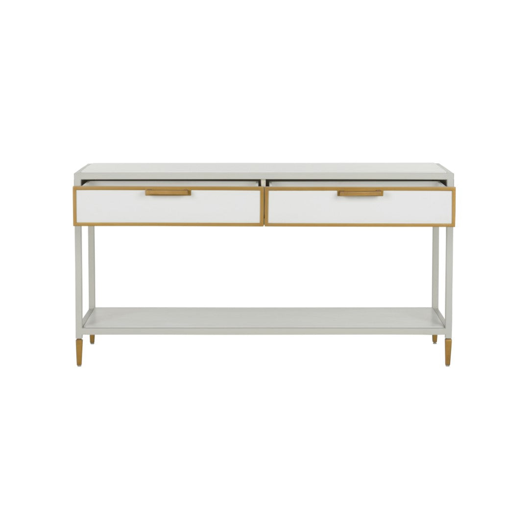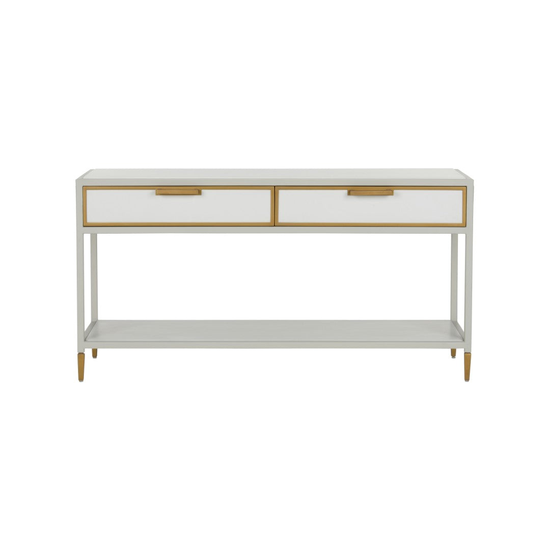 Elevate your entryway or living space with the Bobbie Console — a refined, versatile table that blends modern simplicity with subtle antique charm. Its clean white finish and antique brass accents create a timeless look that complements contemporary and classic interiors alike, while offering practical surface and storage options for everyday use.