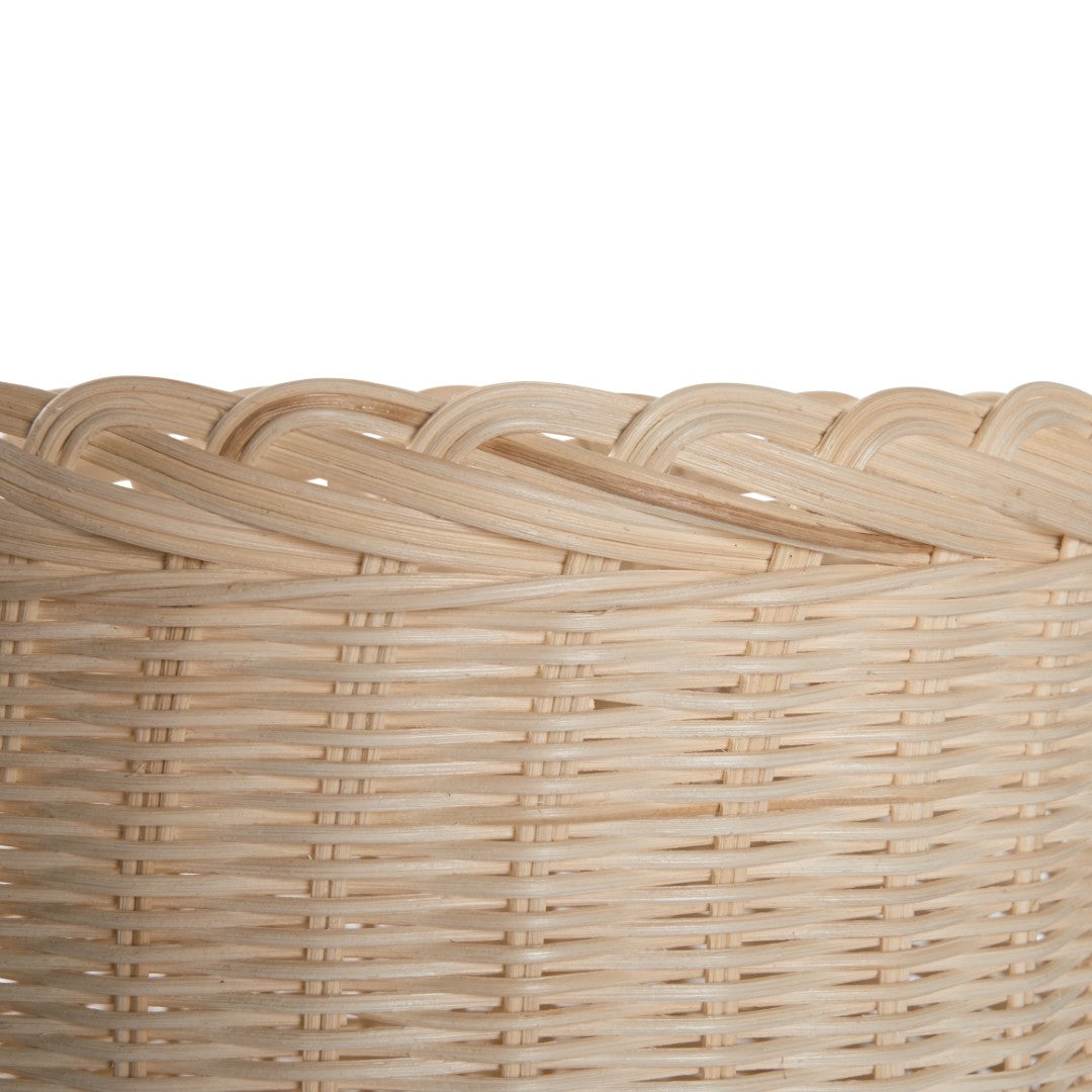 Bring natural texture and handcrafted charm to your home or office with this large braided wicker planter. Hand-woven from natural rattan and finished with a signature braid trim, its classic shape and artisanal variations make it a stylish holder for rolled towels, office supplies, or a small potted plant. Durable yet lightweight, it complements rustic, coastal, and contemporary interiors.