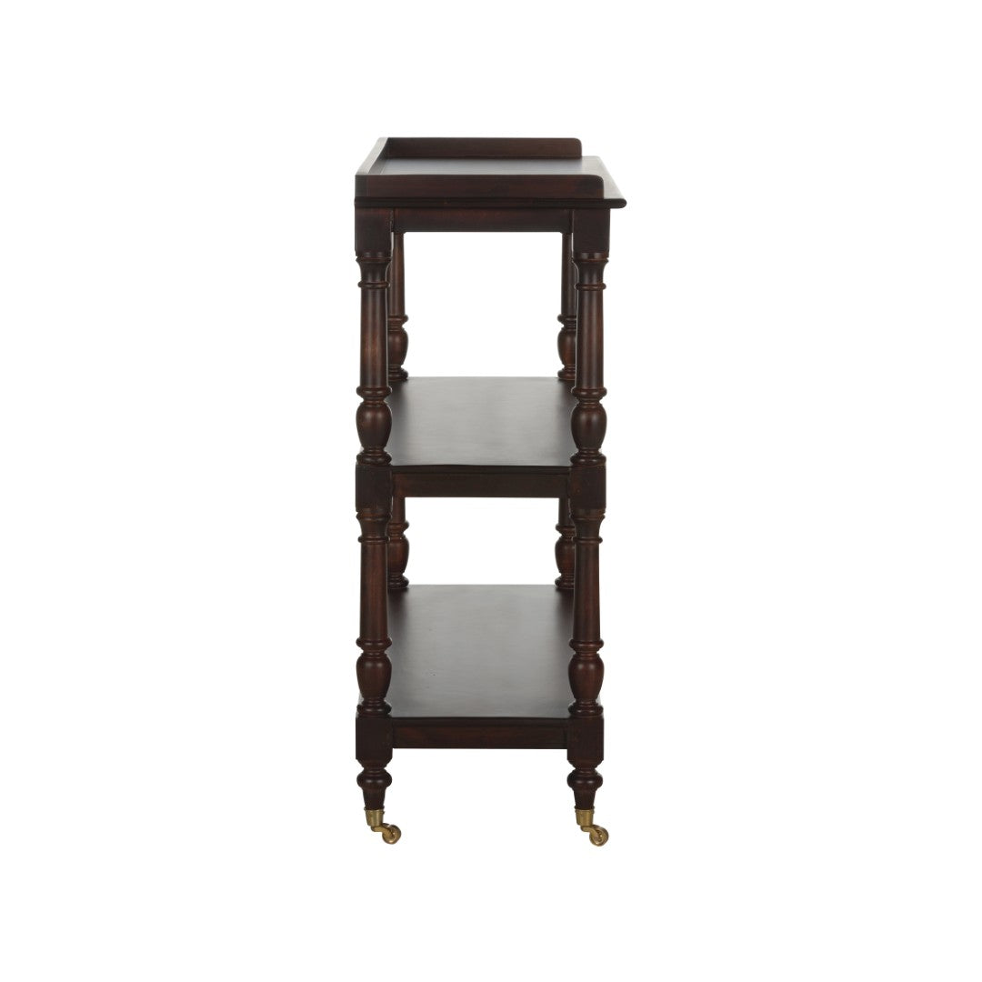 Elevate your entertaining and home organization with this elegant butler’s trolley, crafted from rich mango wood that highlights natural grain and warm tones. Thoughtfully designed for both style and function, the cart offers open, accessible storage for beverages, glassware, and bar tools while the brass-finish caster wheels add a refined accent and smooth mobility—perfect for hosting or everyday use.