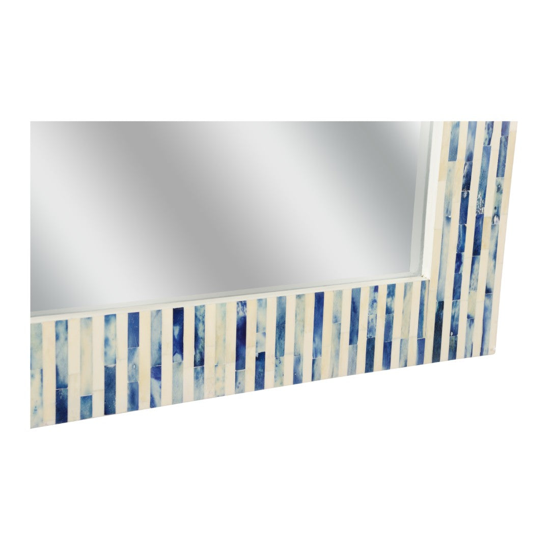 Elevate your space with the Cambridge Mirror — a sculptural wall piece that blends artisanal craftsmanship with timeless elegance. The hand-cut bone inlay frame displays a striking geometric pattern in rich blue and crisp white, adding depth, texture, and a refined focal point to living rooms, bedrooms, or entryways. It reflects light beautifully while serving as an artful accent that complements contemporary and classic interiors alike.