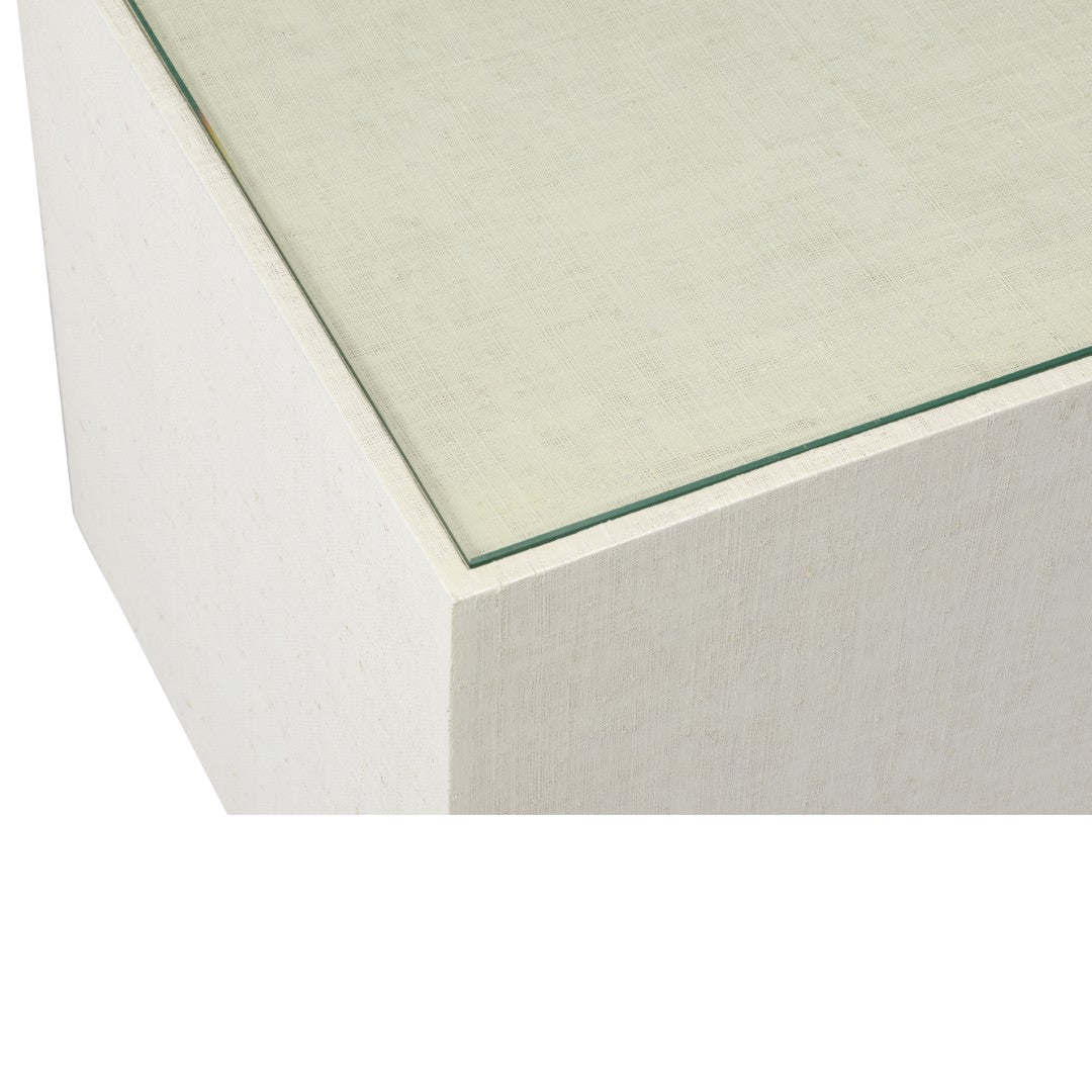 Elevate your living space with this versatile, modern bunching table that combines clean-lined design and practical durability. Wrapped in a refined linen finish and topped with a clear beveled glass insert, it works beautifully as a standalone end table or grouped in multiples to create a tailored cocktail table arrangement. Designed by Jamie Merida, the table’s compact footprint and multiple color options make it an adaptable accent for contemporary and transitional interiors.