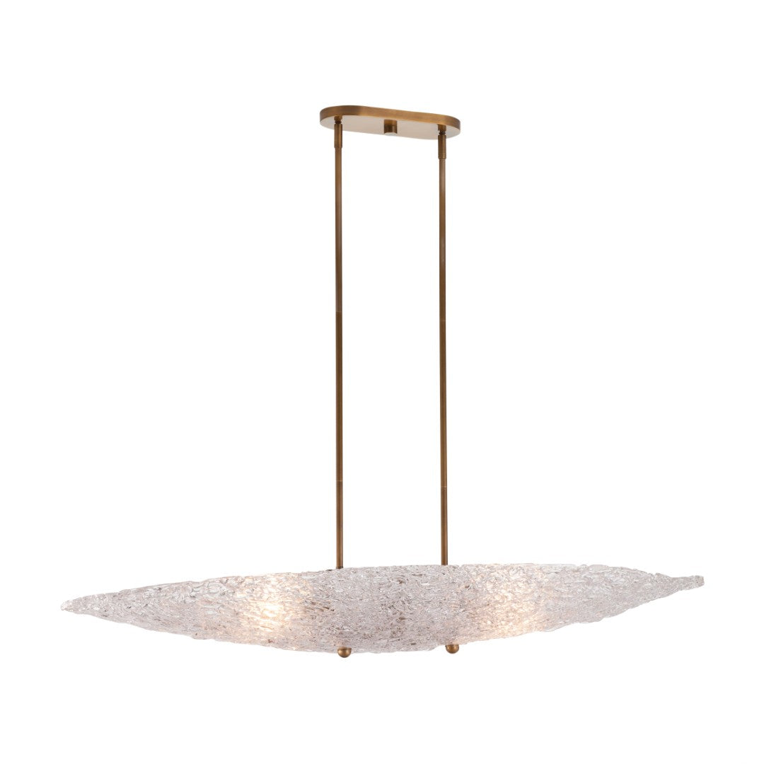 Add a touch of organic elegance to your space with this gold-finished chandelier, where oval textured glass pieces evoke delicate leaves and diffuse light for a warm, inviting glow. Its nature-inspired silhouette and refined antique brass finish make it a versatile focal point for dining rooms, entryways, or living areas.