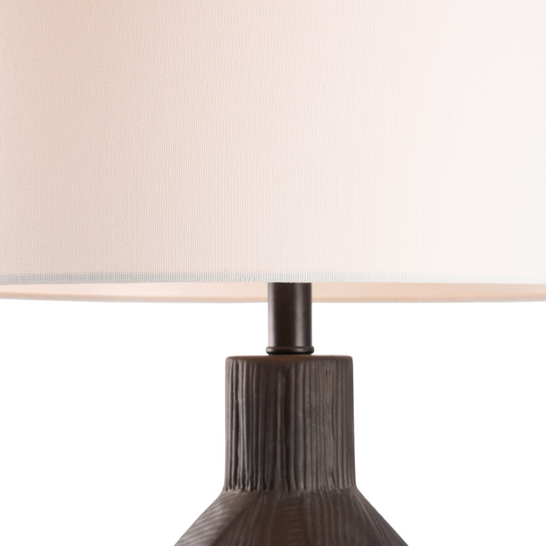 Bring quiet sophistication to any room with this Furrow Lamp in matte black. Crafted from ceramic with subtle linear textures, its minimalist silhouette enhances modern and transitional interiors while casting a warm, refined glow. Ideal for bedside tables, desks, or living room side tables, the lamp balances sculptural presence with understated elegance.