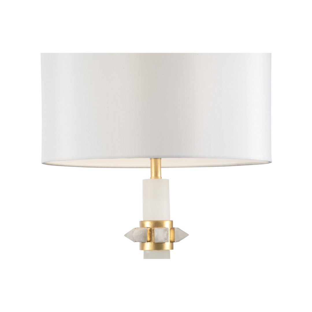 Elevate your interior with a refined statement piece: a column-style alabaster table lamp that blends timeless materials and artisanal details for understated luxury. Its warm natural stone glow, crystal collar accent, and antique gold leaf highlights make it equally at home on a bedside table, console, or desk—paired with a crisp white fabric shade for soft, even illumination.