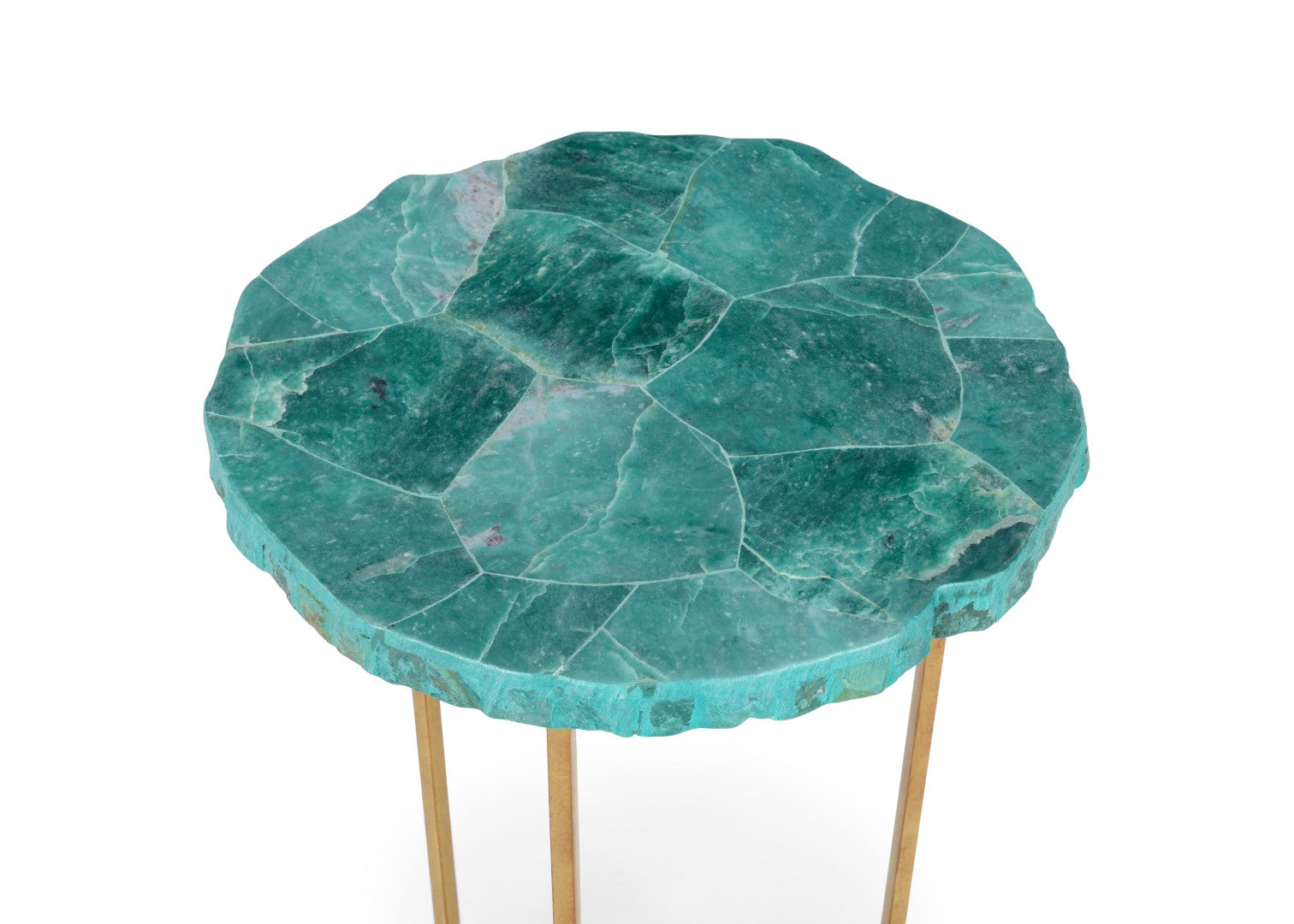 - Top: Magnificent jade veneer with natural variation in green tones and an organic-cut edge for a handcrafted look