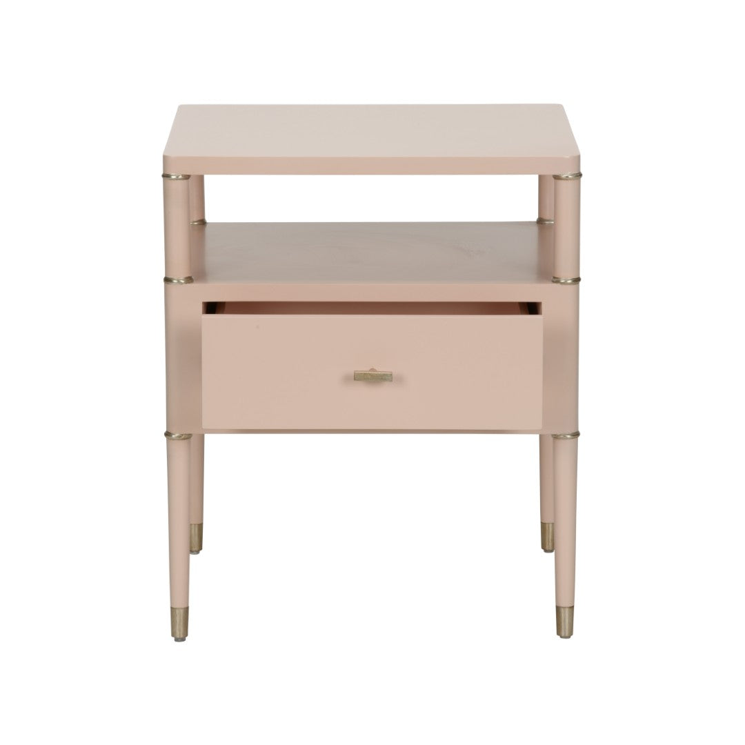 A refined blend of graceful design and everyday practicality, this side table brings subtle luxury to any living space. The Landry Side Table features a compact square silhouette, two-tier storage for easy organization, and metallic edge and hardware accents that catch the light for an elevated look. Designed by Shayla Copas, it pairs well with modern, transitional, and glam interiors.