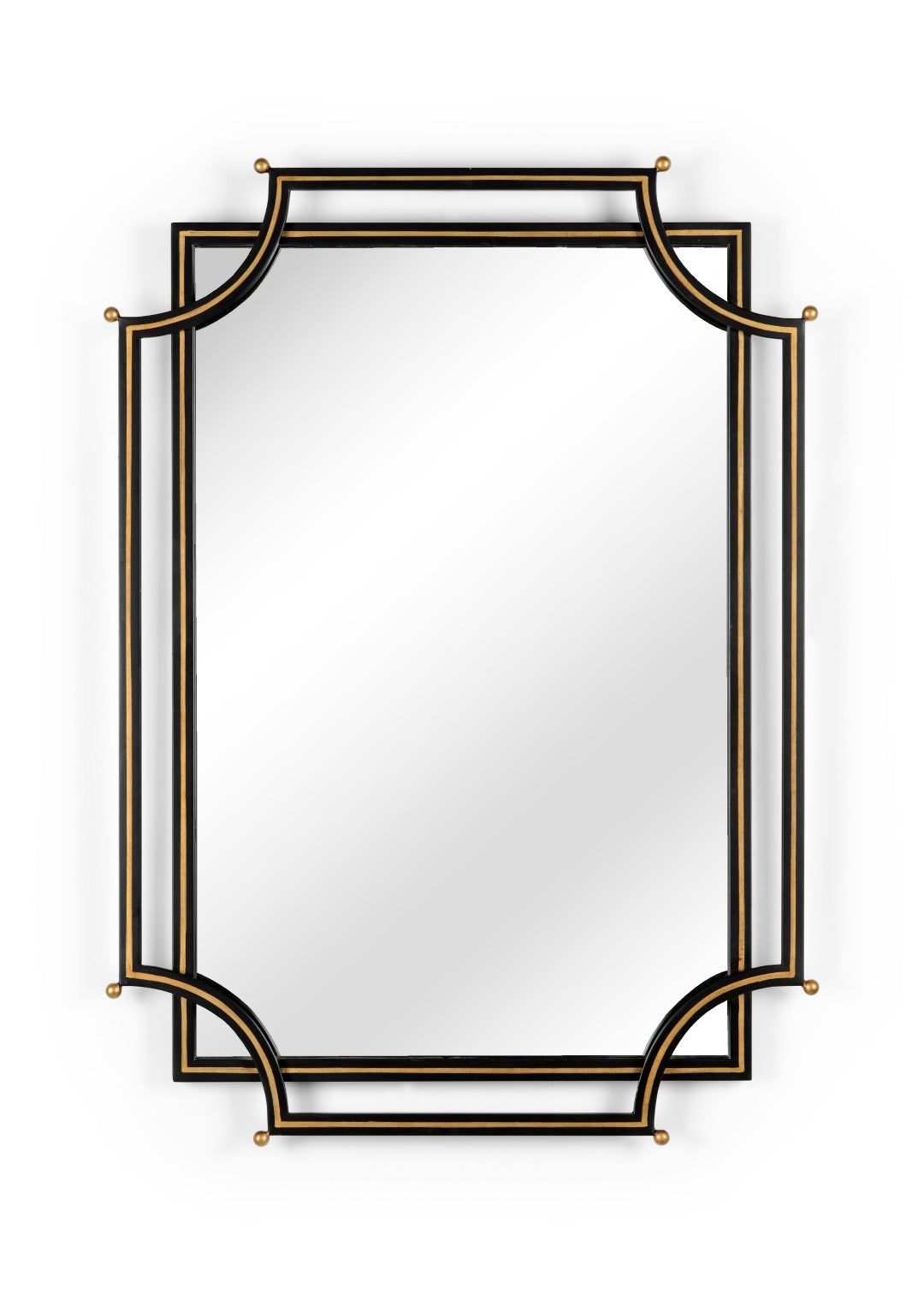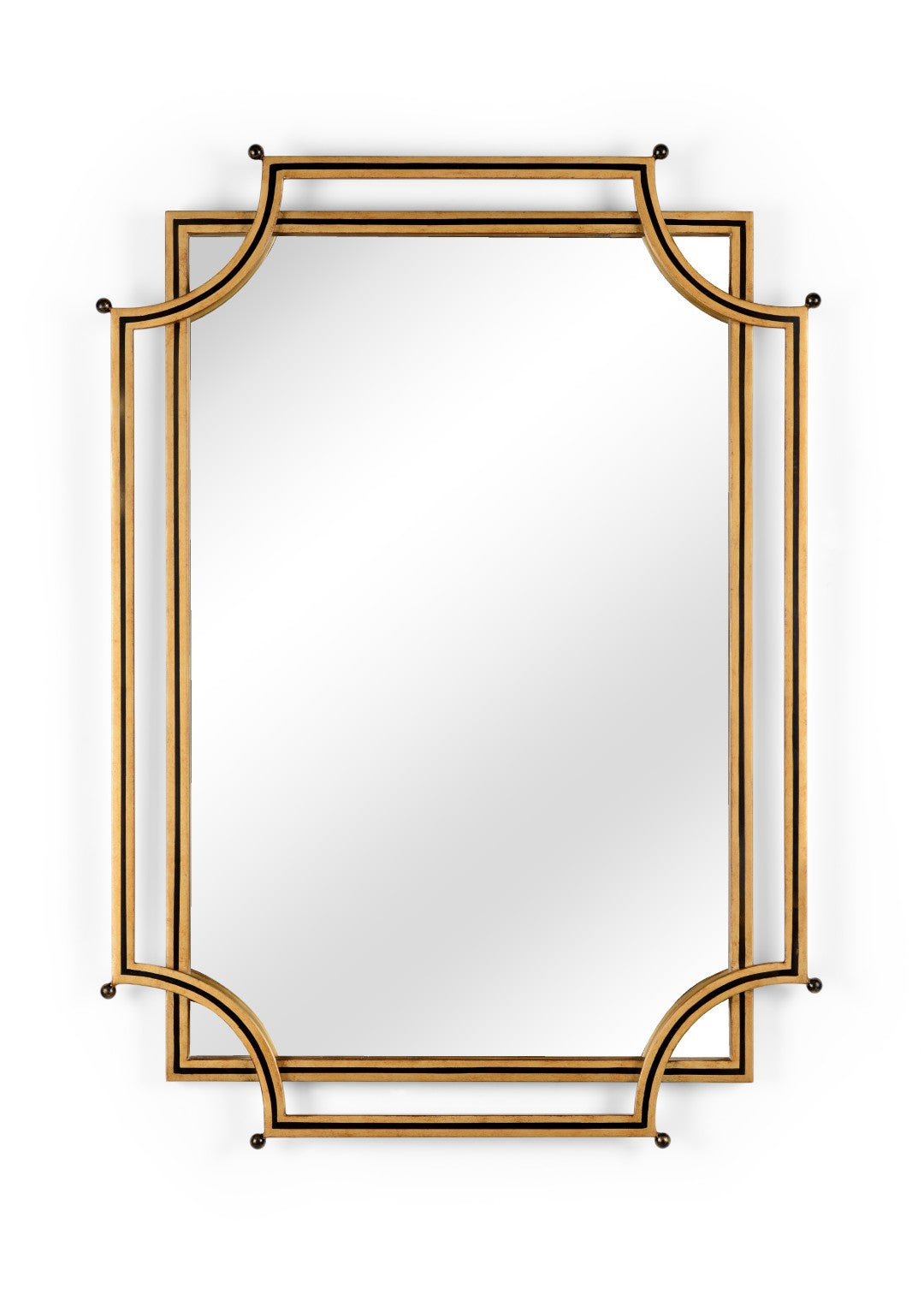 Elevate any room with the London Church Mirror — a contemporary statement piece that combines architectural layering with refined metallic finishes. Two stacked metal frames create depth and visual interest: a sleek gold inner frame with black accents cradles a plain mirror, while a larger outer frame with rounded cut-out corners adds bold, modern character. Designed by Bradshaw Orrell and arriving ready to hang, this mirror suits entryways, living rooms, bedrooms, or above a console or mantel.