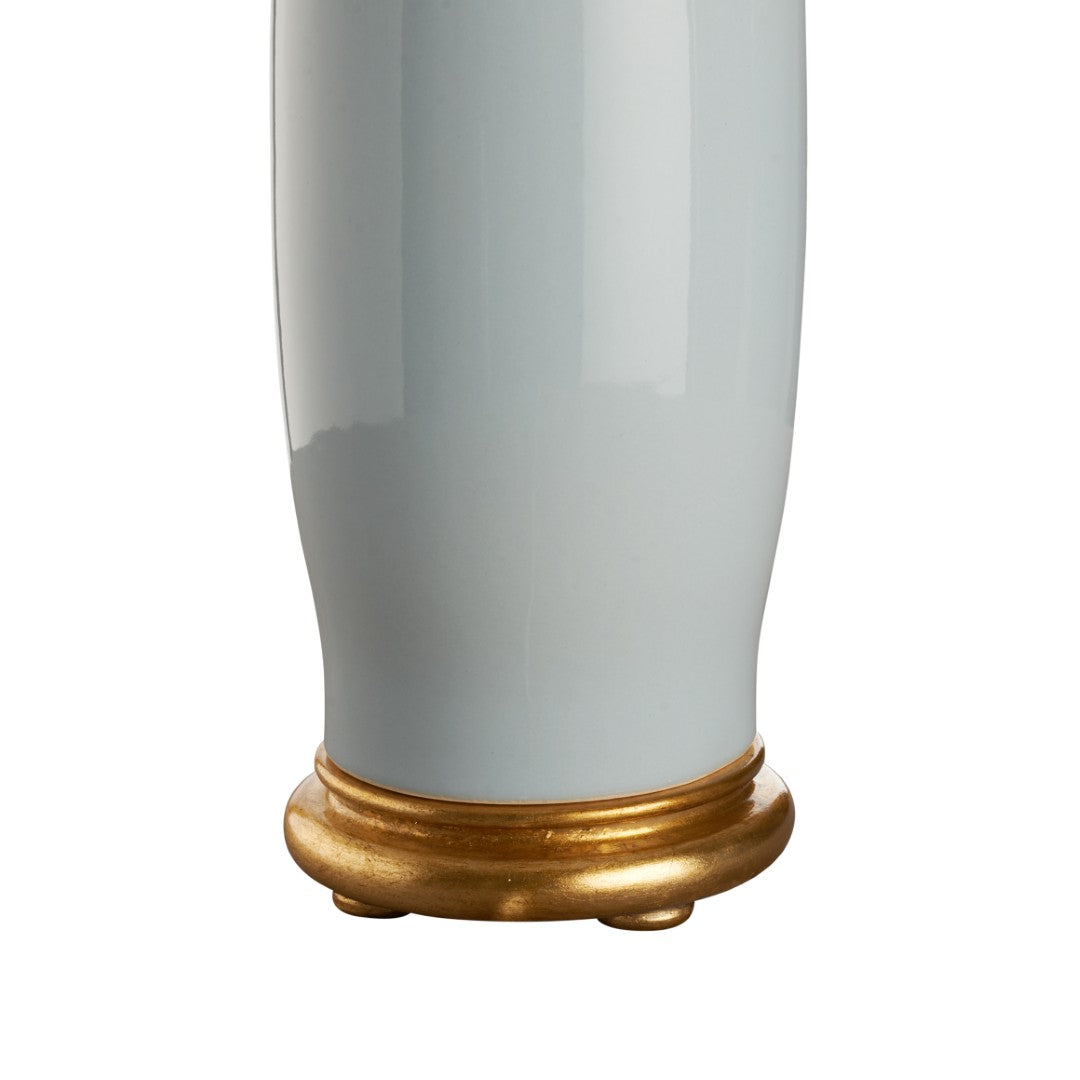 Elevate your bedside or accent table with the Melanie Lamp — a refined ceramic piece that blends modern minimalism with subtle luxury. The soft Sleepy Hollow blue glaze creates a calm, contemporary presence, while the gold base and clean silhouette add an upscale finishing touch. Designed by Jamie Merida, this lamp is ideal for creating a serene, stylish atmosphere in living rooms, bedrooms, or entryways.