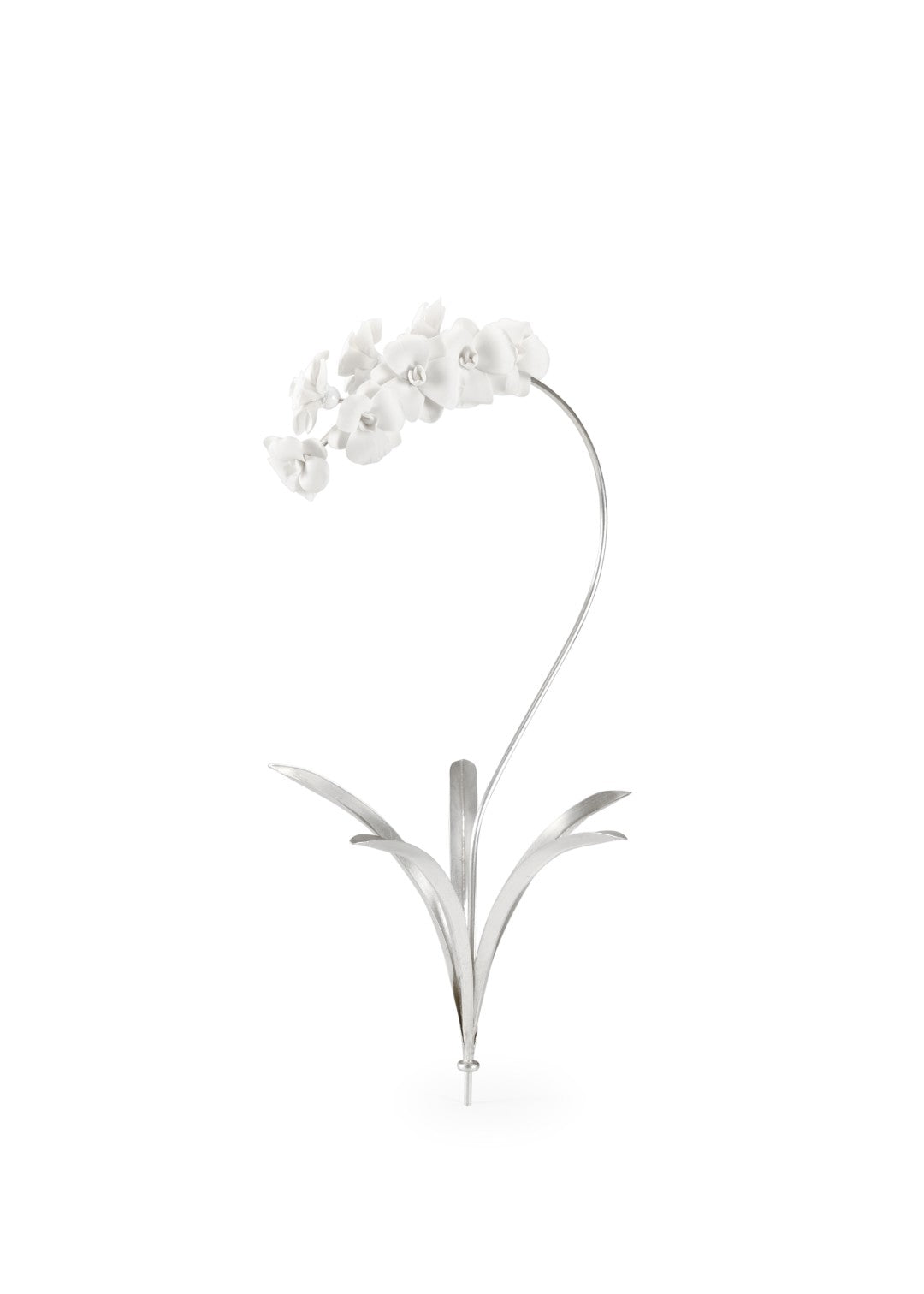 Capture the timeless elegance of orchids with this artisan-crafted silver stem—an elegant accent that brings refined beauty to any interior. Hand-finished porcelain blossoms and antique silver leaf over iron create a sculptural piece that complements planters, cachepots, or standalone displays on tables and credenzas.