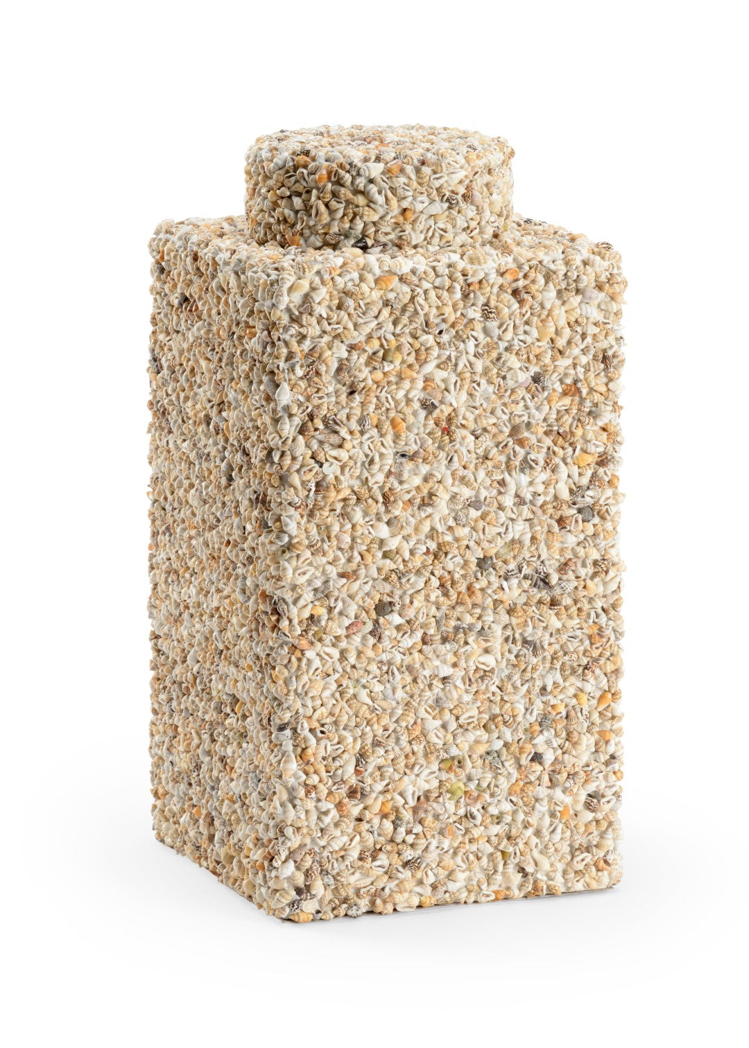 Add coastal elegance and tactile charm to your kitchen or living space with this handcrafted tea caddy adorned in natural nassa shells. The seamless shell covering and secure hinged lid create a refined display piece that also stores tea, small keepsakes, or serving accessories while reflecting light and texture for a sophisticated, beach-inspired accent.