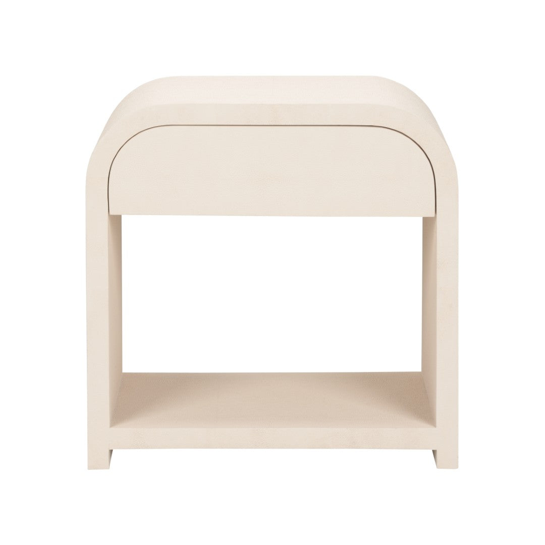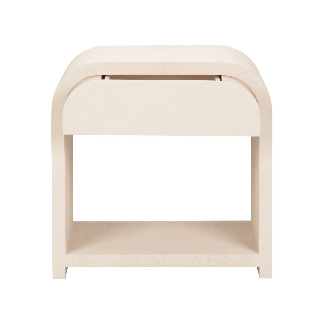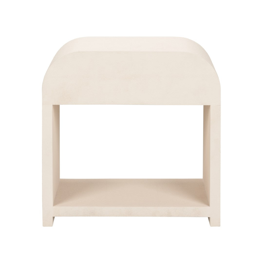 Add a refined, contemporary accent to any room with the Vail Side Table. Designed by Elizabeth Wicker, this versatile piece blends a cream faux shagreen finish with clean lines to complement modern, transitional, or eclectic interiors — perfect as a bedside companion, living room accent, or cozy reading nook companion.