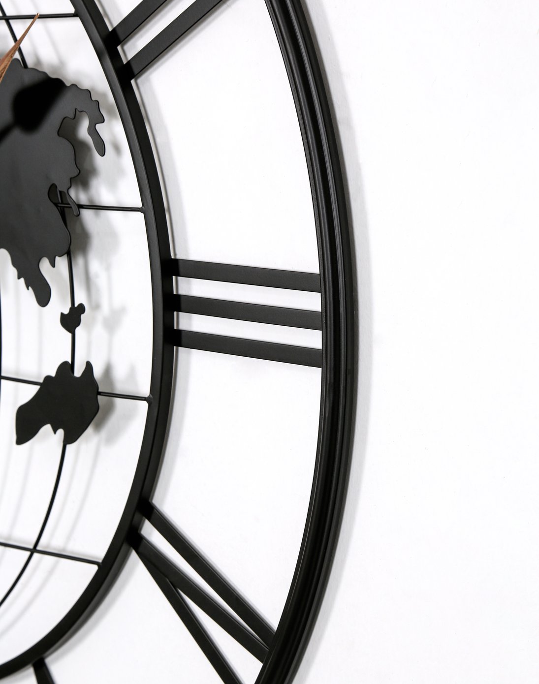 Elevate your space with a striking blend of form and function: this large metal wall clock features a modern world map motif and elegant gold pointers that serve as both a clear timepiece and a bold decorative statement. Handcrafted detailing and a whisper-quiet movement make it ideal for living rooms, entryways, dining rooms, or bedrooms where style and serenity matter.