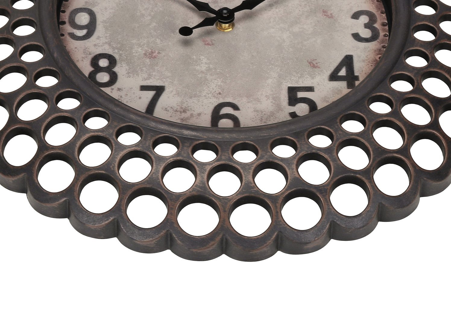 - A trendy and eye-catching 16" round wall clock with a sleek dark brown plastic frame with circular cut-outs adds a modern touch to any room.