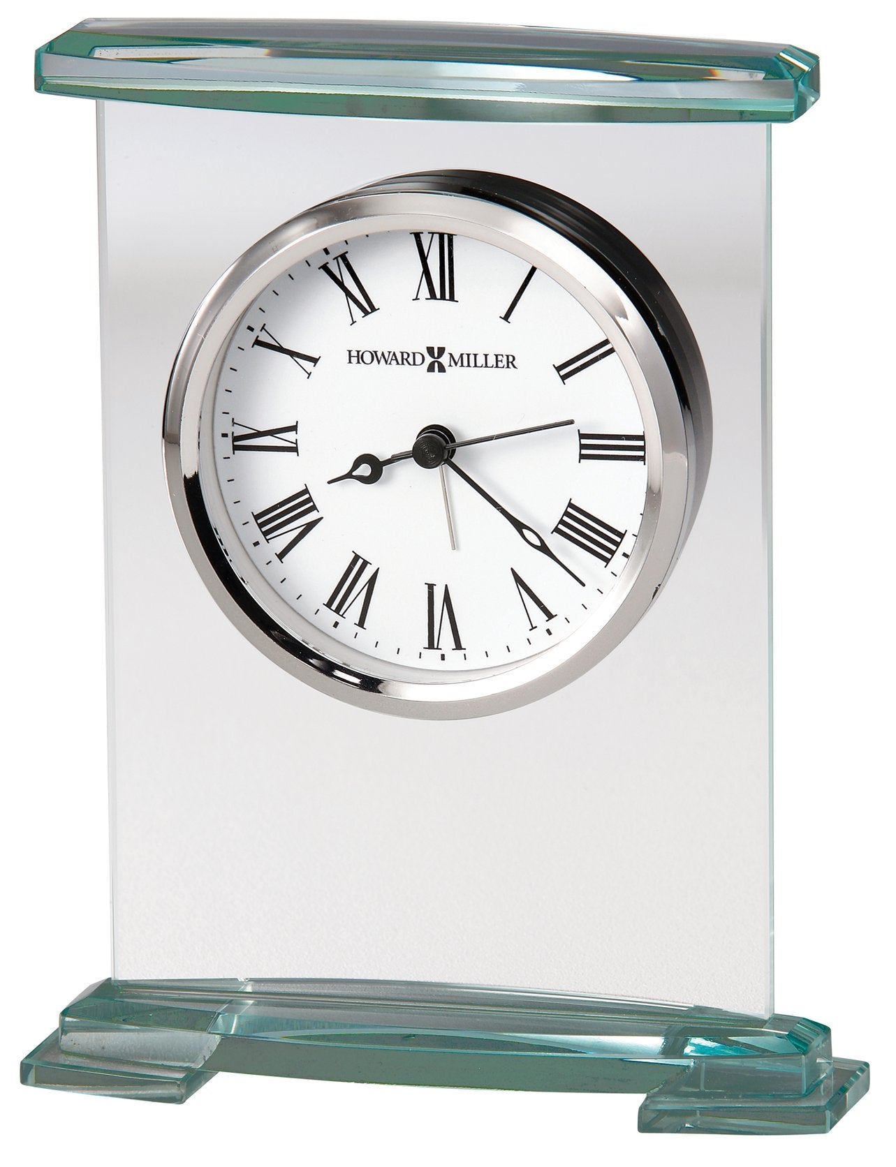 - Table Clock is a glass bracket-style constructed of curved beveled glass panels to complement your home decor. The clock&rsquo