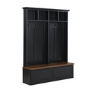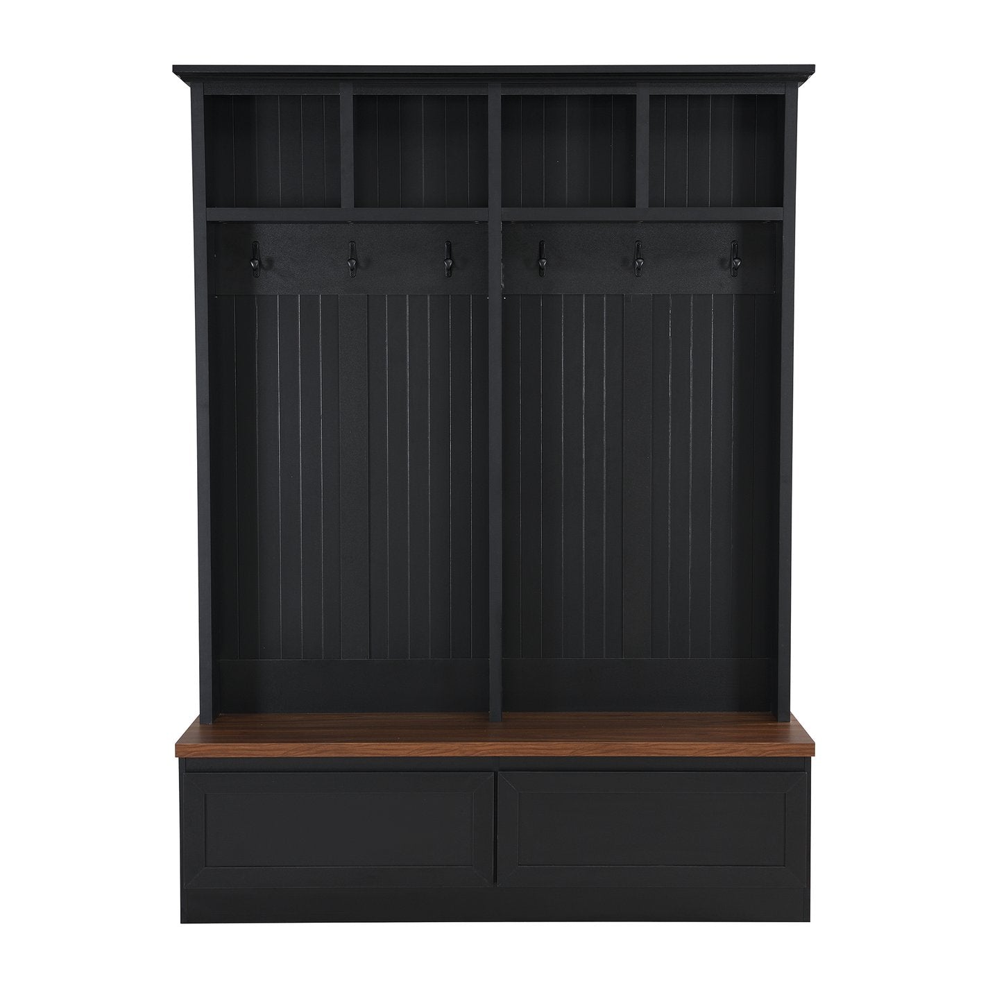 - This hall tree integrates seating bench, storage drawers, hanging hooks and open storage space, significantly enhancing the functionality of this product and providing a comprehensive solution for organizing your entry or hallway area.